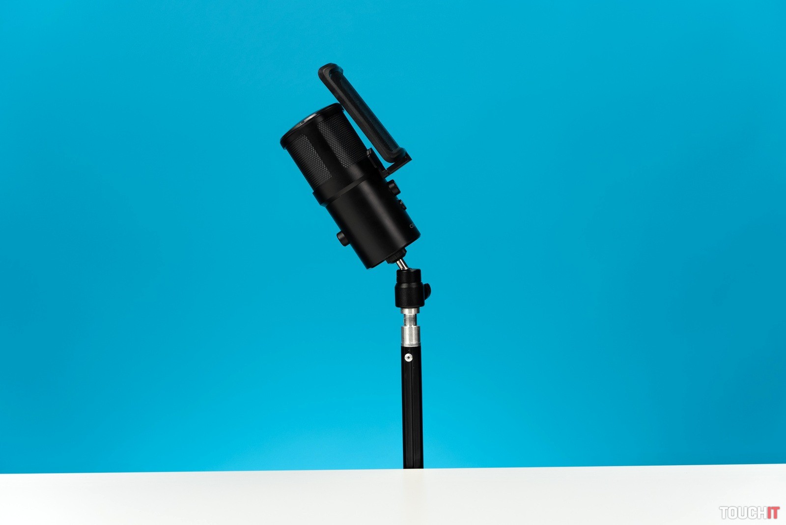 Pri stlmení mikrofónu je o tom používateľ informovaný LED diódou. Pozitívne hodnotíme aj ťažkú základňu, ktorá umožní mikrofón stabilne umiestniť kdekoľvek na stole. Je ju možné nastaviť v rôznych polohách až do 90° alebo otáčať v rozsahu 360°. Počas streamovania alebo nahrávania sa tak môže používateľ naplno venovať svojej práci, a nemusí riešiť, či ho mikrofón nahráva správne. Vďaka univerzálnemu úchytu je mikrofón dokonca možné upevniť aj na štandardný mikrofónový stojan, alebo na stojan pre streamerov.