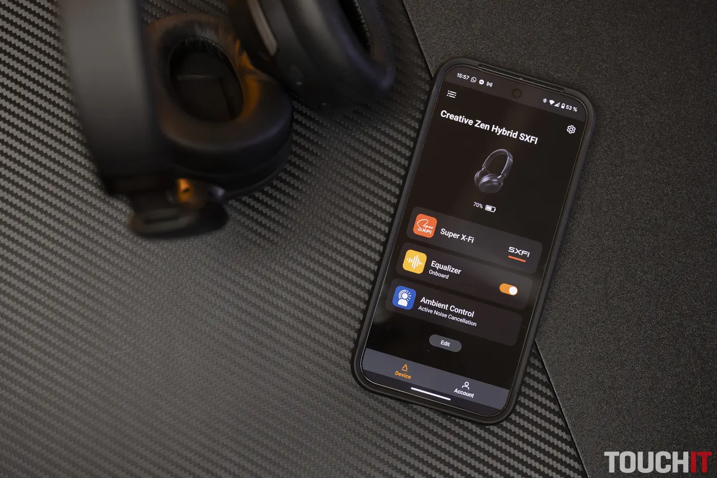 Aplikácia Creative je veľmi jednoduchá. Ponúka zapnutie a vypnutie funkcie SXFI, ekvalizér a nastavenie ANC a ambientného režimu. ANC je možné ešte doladiť podľa preferencií používateľa, avšak ambientný režim to spraví za používateľa. Ambientný režim taktiež umožňuje detailné nastavenie úrovne, avšak hlasitosť zvukov z okolia by mohla byť pri maximálnej hodnote nastavenia ešte o niečo vyššia.