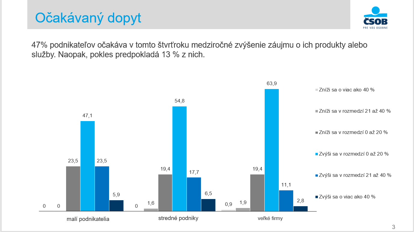 ČSOB ako poskytovateľ úverov má prieskum o tom, aká je podnikateľská nálada a predpoklady na poskytovanie podnikateľských úverov.