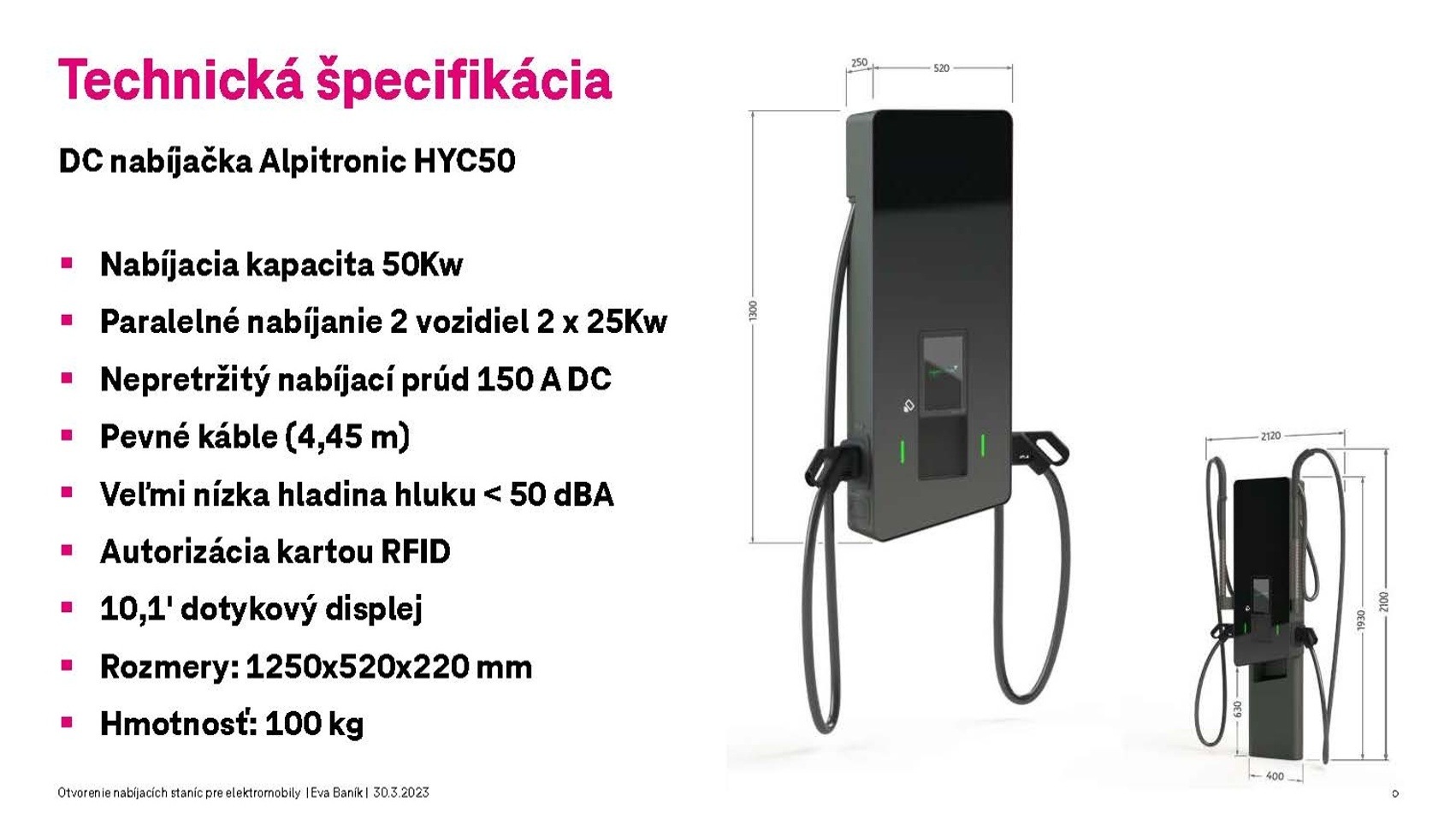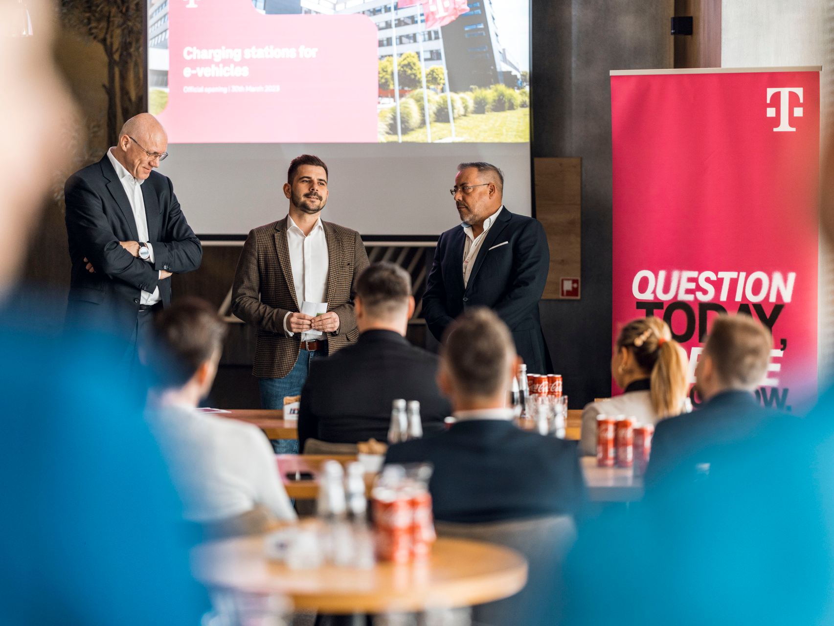 Slávnostné otvorenie a spustenie elektrických nabíjacích staníc do prevádzky prebehalo vo štvrtok, 30. marca 2023, v areáli biznis centra Deutsche Telekom za účasti zástupcov spoločnosti, inštitúcií aj regiónu.