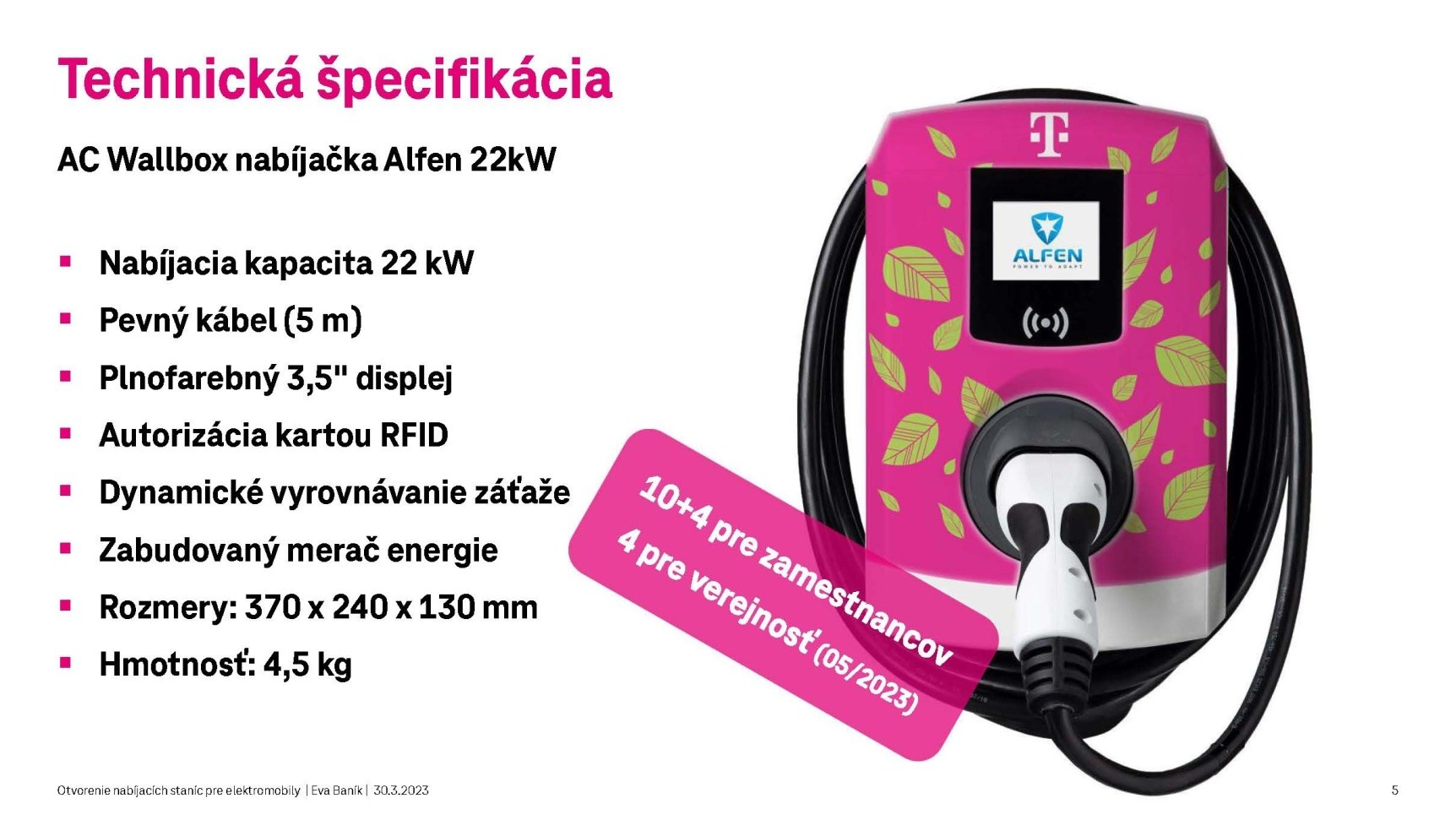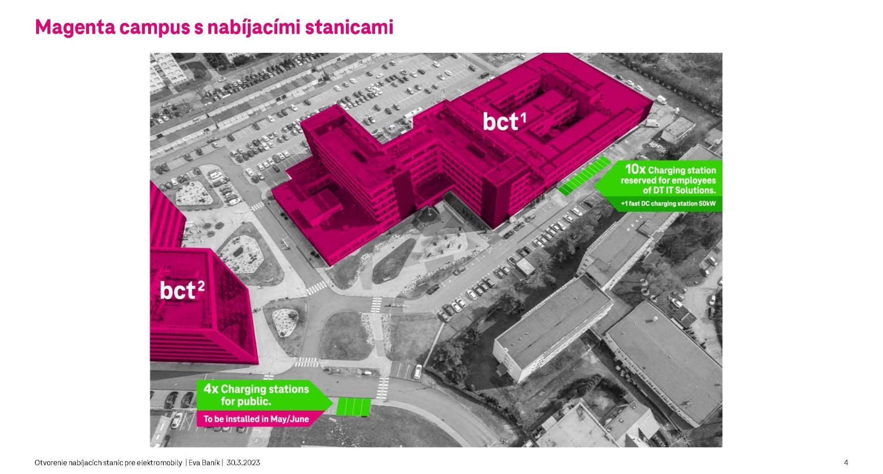 „V rámci našich aktivít, pomocou ktorých sa zaväzujeme znížiť uhlíkovú stopu, sme slávnostne otvorili a spustili do prevádzky prvých 10 nabíjacích staníc pre elektromobily. Do konca prvého polroku pribudnú ďalšie aj pre verejnosť,“ vyjadril sa Andreas Truls, generálny riaditeľ Deutsche Telekom IT Solutions Slovakia.