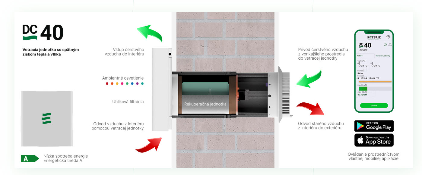 Je to úplne iný systém ako keď vetráte tradičným otvorením okna. Vtedy totiž síce dostanete do miestnosti čerstvý vzduch, ale počas zimných mesiacov je chladný, v lete rozpálený a teda stratíte podstatnú časť energie. Doslova ju vypustíte von oknom a budete musieť použiť ďalšiu energiu na opakovaný ohrev čerstvého vzduchu na izbovú teplotu. To potom zaplatíte na spotrebe elektrickej energie alebo plynu.