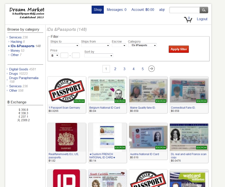 Dream Market a jeho ponuka ukradnutých a falošných občianskych preukazov a identifikačných kariet
