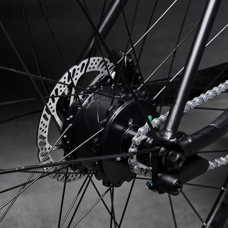 Samozrejmosťou sú aj veľké blatníky, pneumatiky s odolnosťou voči prepichnutiu, kompletné LED osvetlenie a nepochybne aj hydraulické kotúčové brzdy (TEKTRO TKR R280), ktoré zaručujú vyššiu úroveň bezpečnosti. A keďže ide o smart bicykel, tak je možné ho prepojiť aj s aplikáciou Decathlon Mobility, kde vidíte rôzne údaje o zariadení a rovnako tak ho môžete cez aplikáciu aj sledovať, čo je nápomocné v prípade krádeže. Bicykel má zabudovanú SIM kartu a celá služba je na prvý rok po zakúpení zdarma, následne sa platia 2 eurá mesačne, bez viazanosti, čo je férová ponuka.