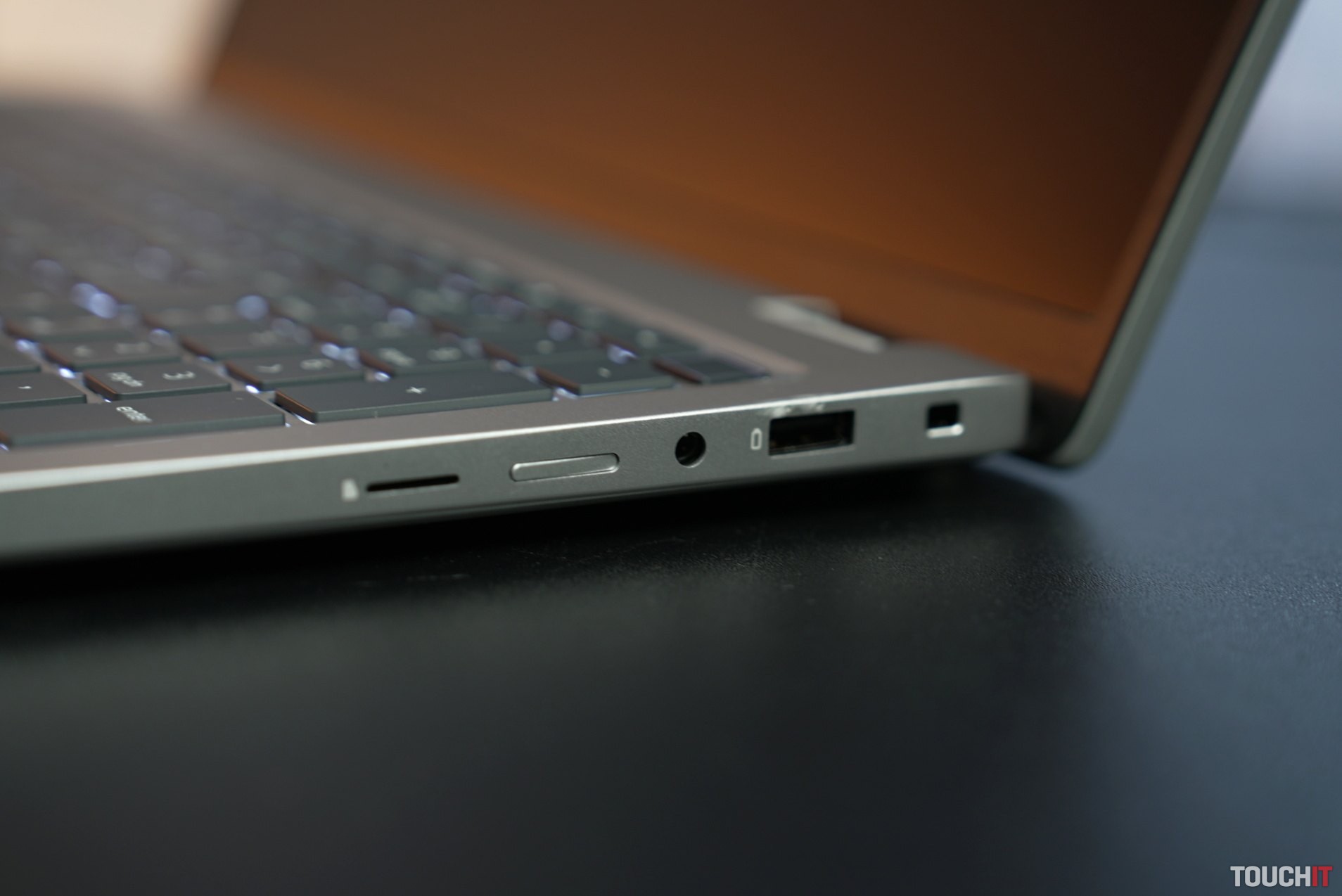 Je škoda, že iní výrobcovia hoci aj u drahších modelov neprinášajú takúto konštrukciu s možnosťou otvorenia na uhol, aký potrebujete. Nad displejom sa nachádza infračervená kamera s fyzickým krytom. Do systému sa dá prihlasovať aj cez snímač odtlačkov prstov na tlačidle vypnutia.