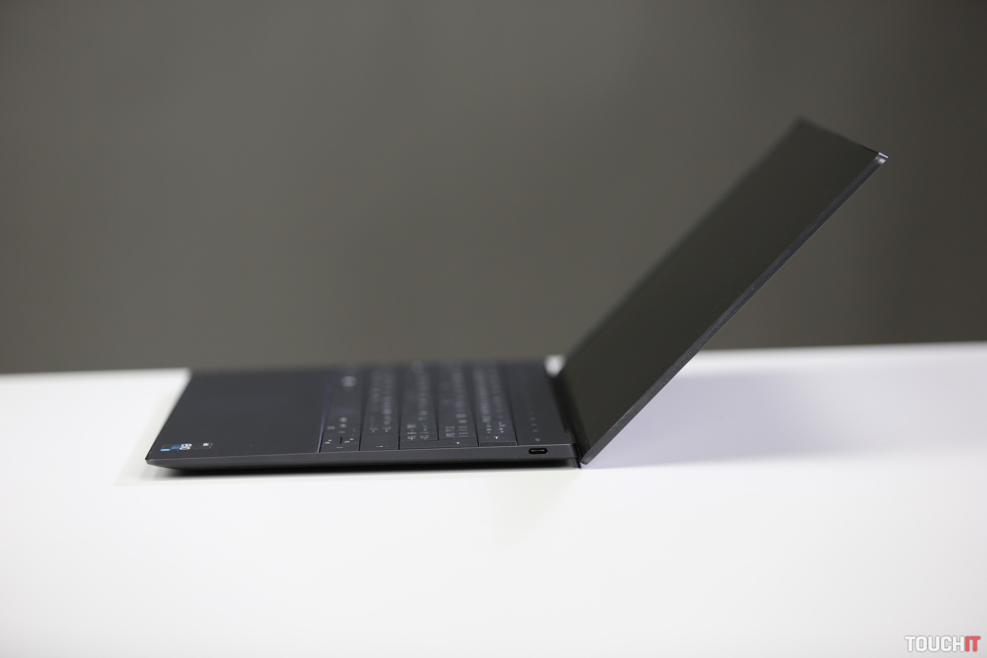 Hliníkové telo a tenký dizajn vyzerajú pekne. Výrobca ale išiel na minimálnu hrúbku, čo malo dopad na výbavu konektorov. Máte dva TB 4 a v balení je redukcia na USB-A a tiež máte v balení redukciu na 3,5 mm audio konektor. Dá sa s tým žiť. Kto si kupuje tento typ notebooku, ocení iné výhody a chýbajúce konektory si doplní cez príslušenstvo.