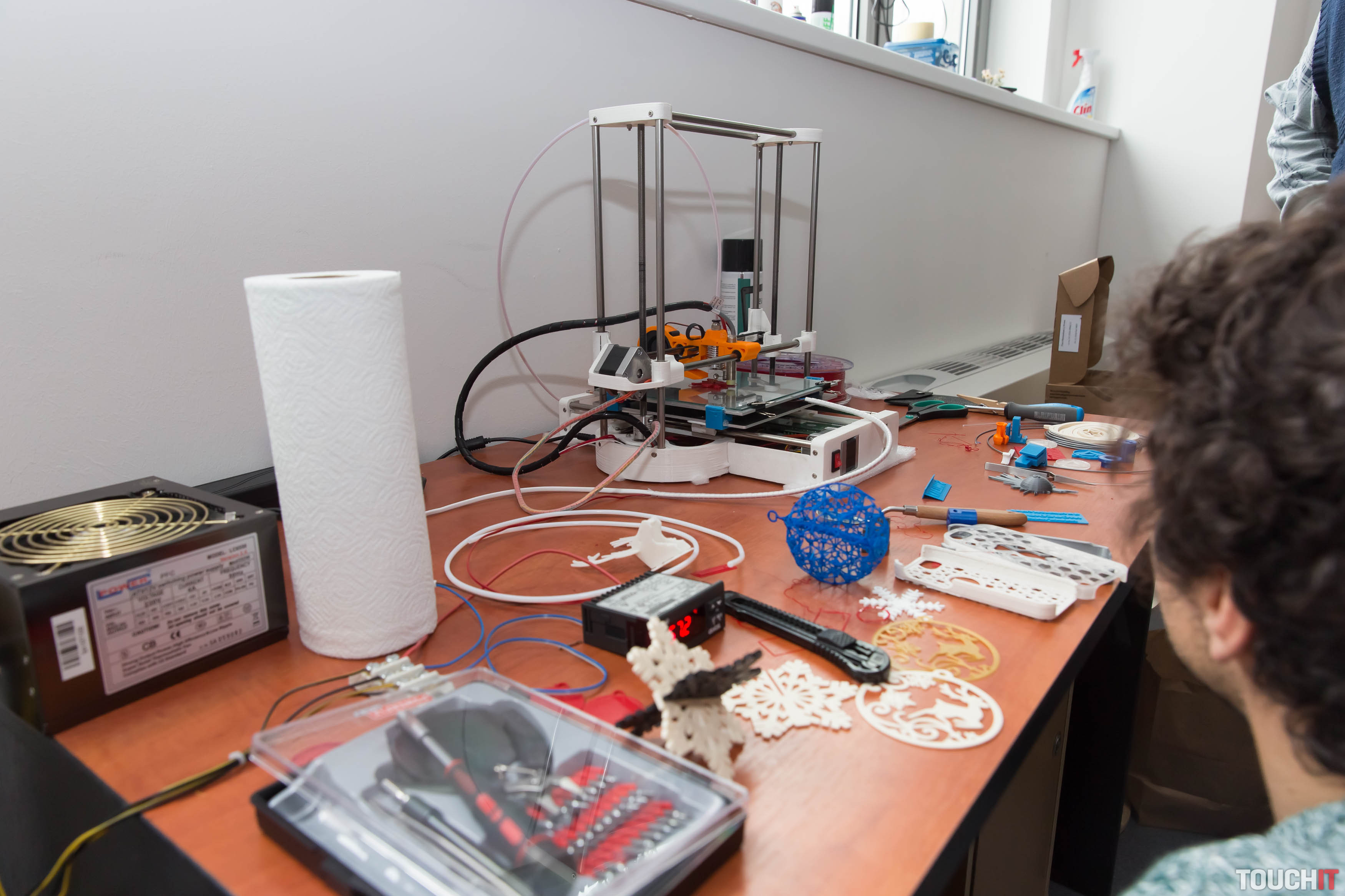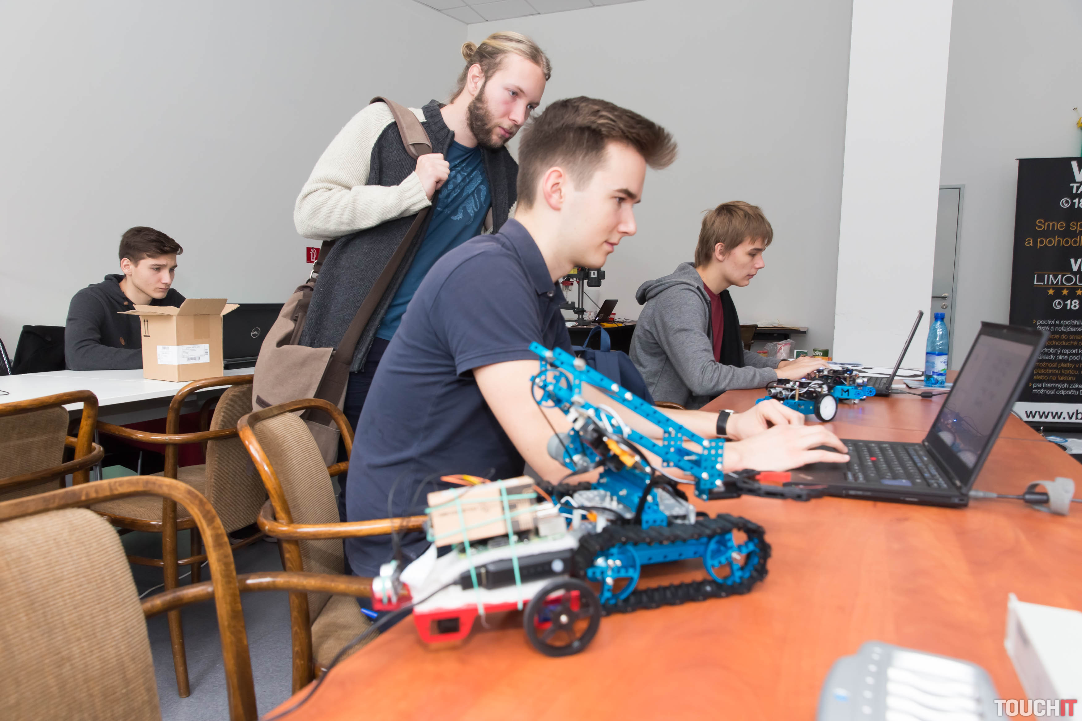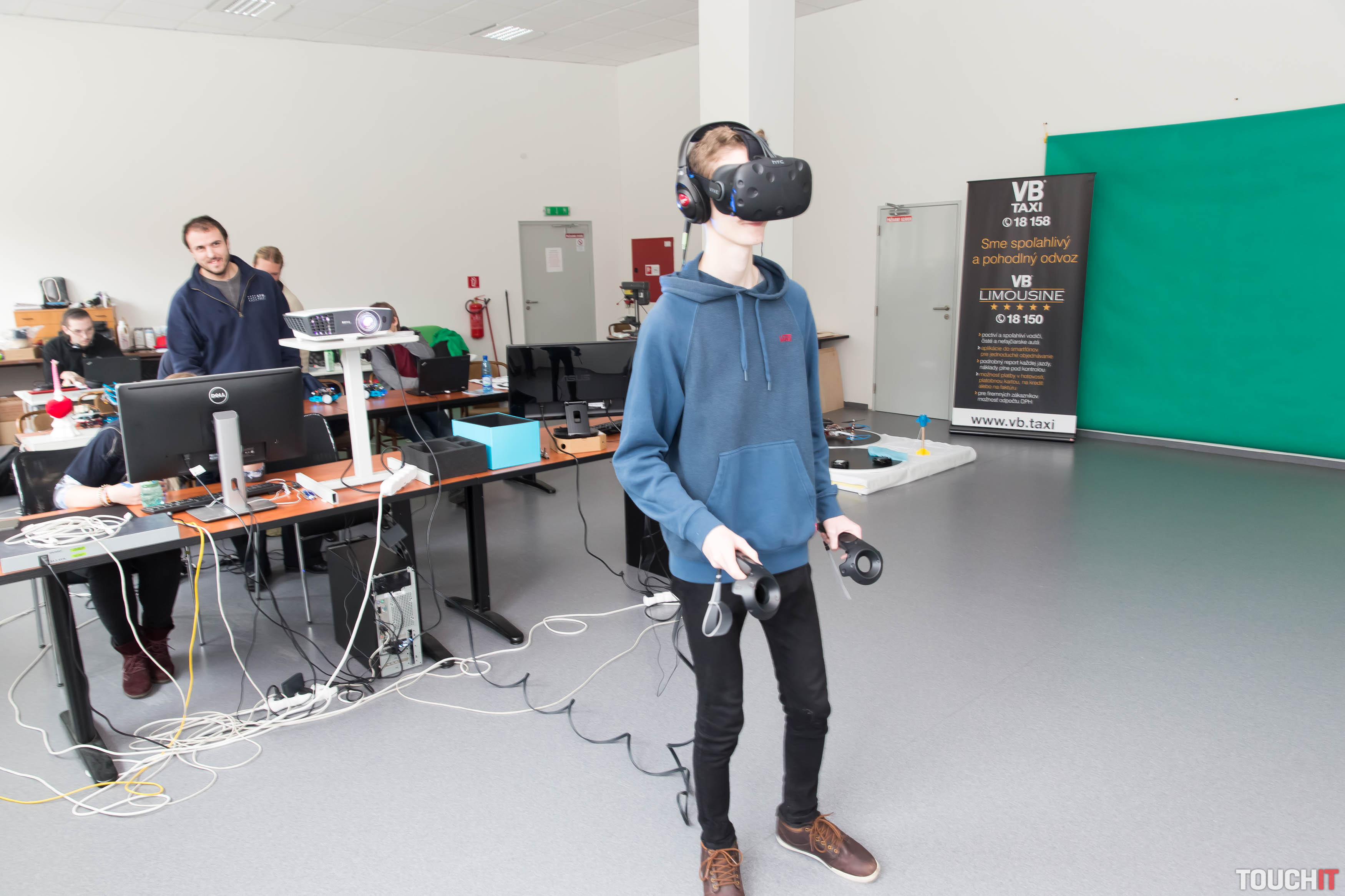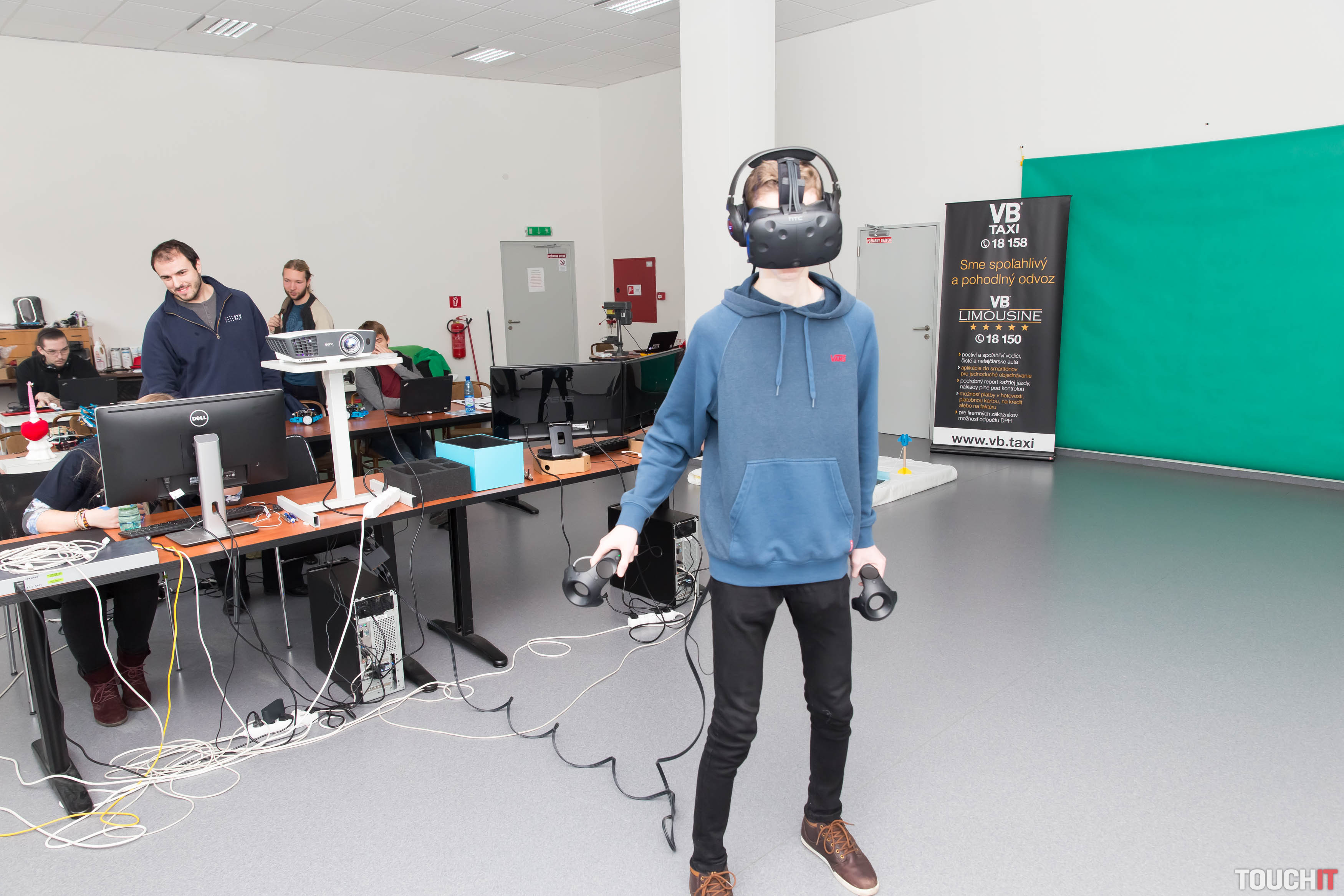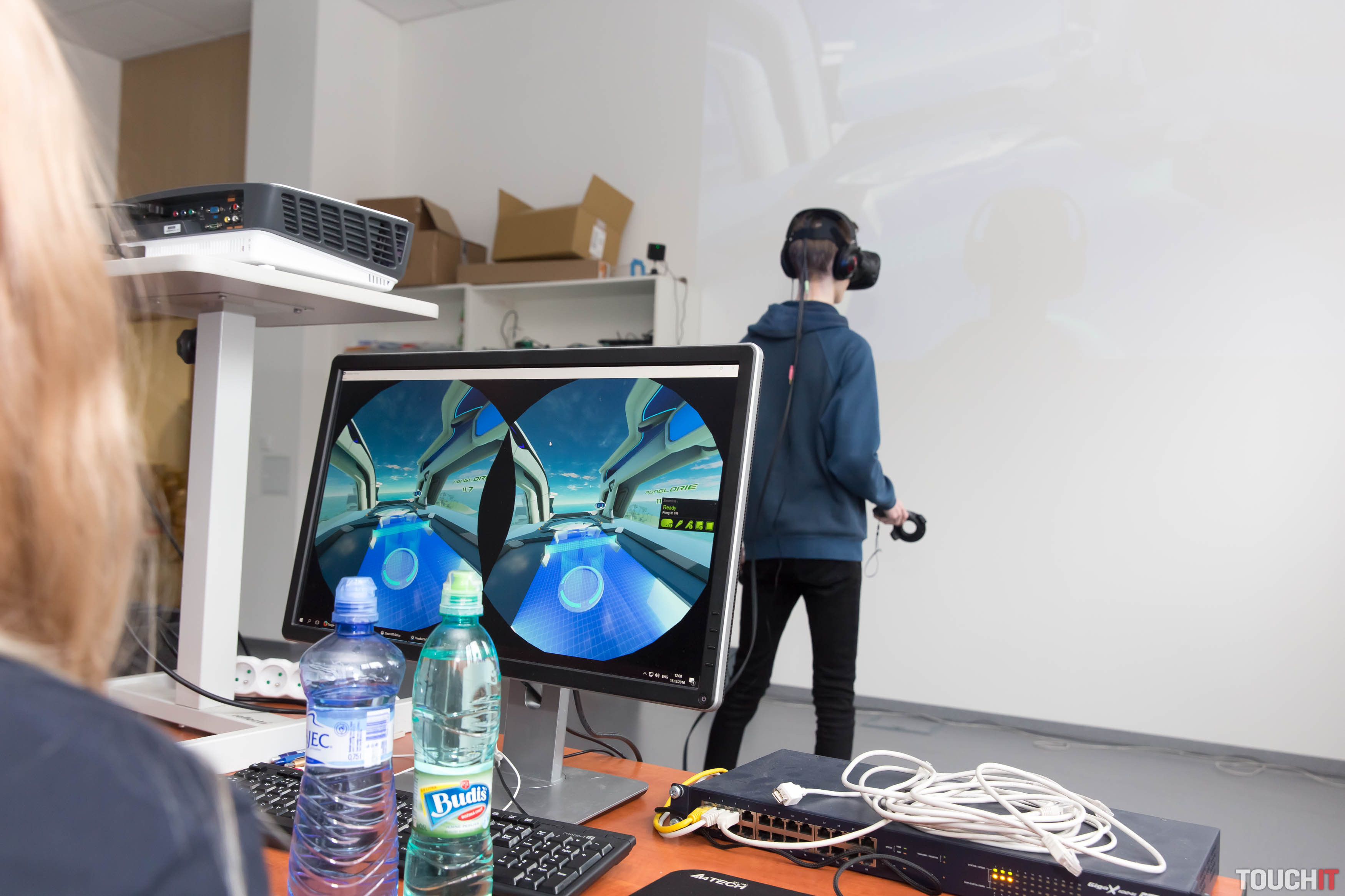 Naša návšteva pokračovala pracoviskom, kde sme našli roboty, okuliare pre virtuálnu realitu HTC Vive a tiež drony.