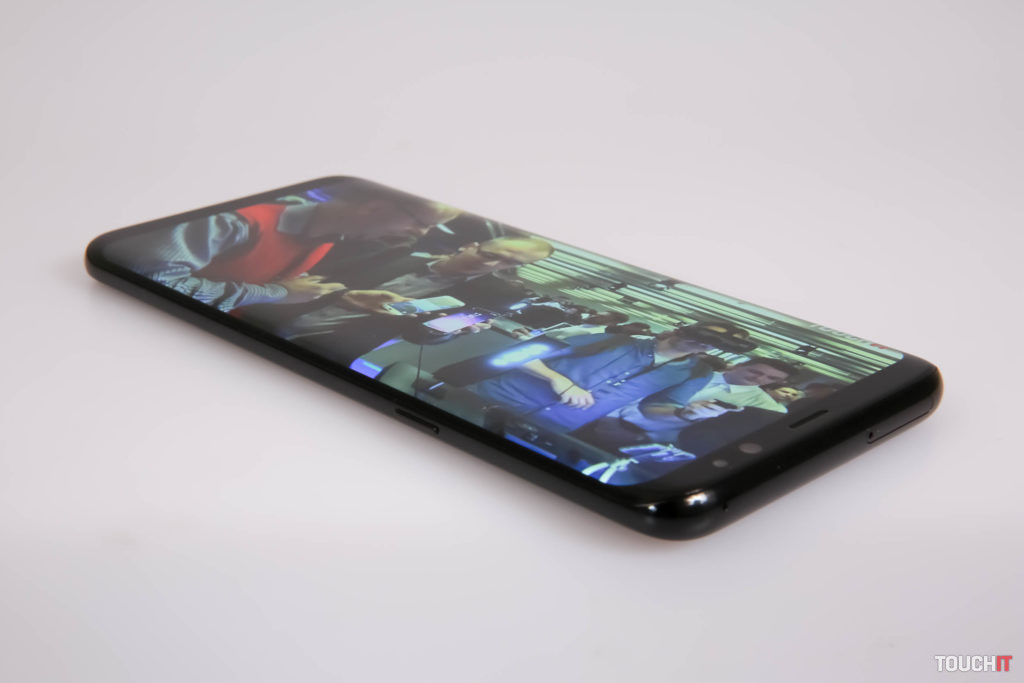 Netradičný je prirodzene displej, ktorý zaberá teraz viac ako 83 % prednej plochy telefónu. S týmto pomerom strán sa na výstave MWC prezentoval aj telefón LG G6 a už vtedy sa nám to veľmi páčilo. Pomer 18,5:9 je bližšie ku skutočnému kino formátu (21:9), a preto takto formátované videá vyzerajú na tomto displeji veľmi dobre. Videá nakrútené v televíznom formáte 16:9 si môžete pozerať buď tak, že majú po hranách od displeja asi 8 milimetrové okraje alebo si video natiahnete tak, aby ste využili celú plochu displeja. Tým však prídete o časť obrazu hore a dole. Rozhodnutie je na vás, my sledujeme videá s tým, že využívame plochu naplno a takto to vyzerá naozaj netradične. Ak by ste sledovali video vo formáte 21:9, na Galaxy S8 uvidíte obraz o 36 % väčší ako na Samsung Galaxy S7. Pekný krok, palec hore.