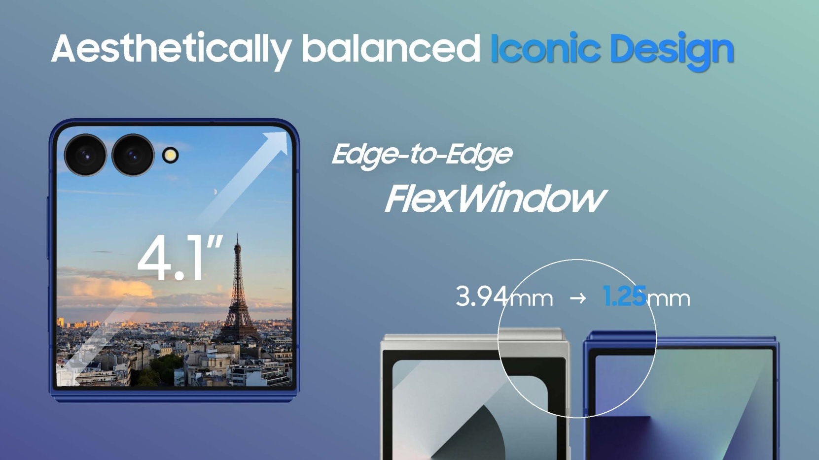 Skladací telefón Galaxy Z Flip7 je potom nový predovšetkým oveľa väčším pokrytím obrazu vonkajšieho panelu. Obraz je teraz aj okolo objektívov, ktoré sú navyše umiestnené viac pri okraji displeja. Aj Galaxy Z Flip7 je najtenším Flipom, aký kedy Samsung vyrobil.