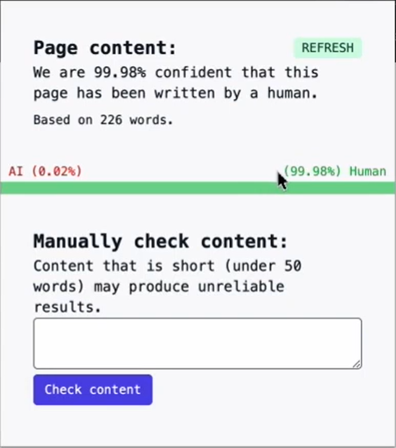Doplnok do prehliadača DetectGPT by vám v tom mohol pomôcť Dá sa použiť zadarmo ale iba na 50 analýz. Keďže funguje ako doplnok s automatickým rozpoznávaním, bude analyzovať otvorené internetové stránky. Tento limitujúci faktor prekročíte veľmi rýchlo. Riešením bude využiť platenú webovú verziu. Tá nemá limit na automatické skenovanie originality na webových stránkach.