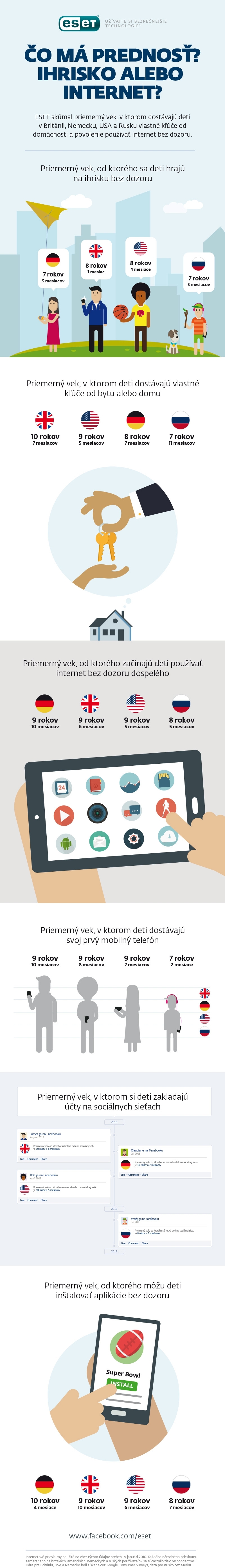 Ruské deti však podľa prieskumu dospievajú oveľa skôr. Na jednej strane takmer žiaden opýtaný rodič v Rusku nedáva deťom mobil alebo prístup k internetu pred piatymi narodeninami, oproti svojim rovesníkom v ostatných krajinách však ruské deti dostávajú skôr vlastné kľúče od bytu (7 rokov a 11 mesiacov), môžu sa skôr hrať bez dozoru na ihrisku (7 rokov a 5 mesiacov) a zároveň aj dostávajú skôr vlastný mobil (7 rokov a 2 mesiace), prístup k internetu bez dozoru (8 rokov a 5 mesiacov) a možnosť sťahovať aplikácie (8 rokov a 7 mesiacov).