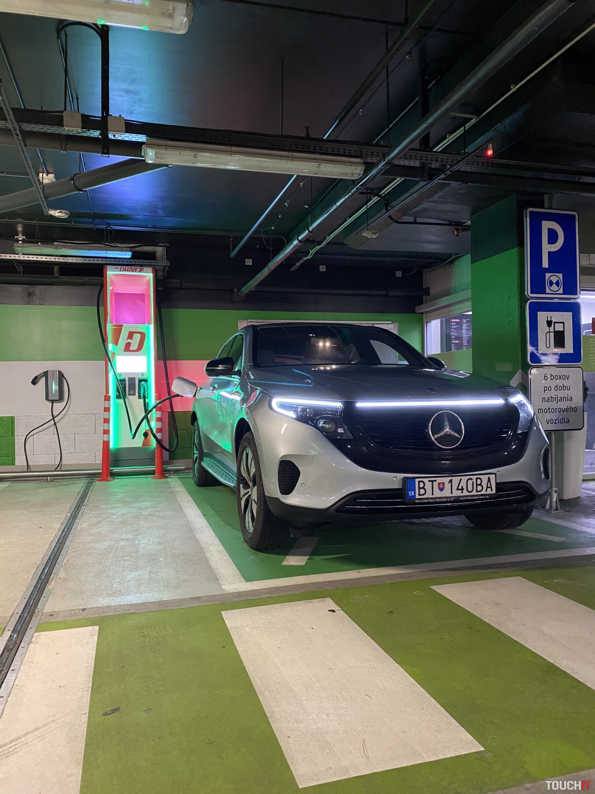 Takže, po nabití Mercedesu EQC na približne 89% sme vyrazili ďalej, smer obľúbený Mikulov, kde sme si dali menšiu prechádzku (krásne historické mestečko, odporúčam!) a cez Rakúsko pokračovali až do Bratislavy. Prečo cez Rakúsko? Lebo lepšie cesty a XY iných vecí. Po príchode som išiel vyložiť dievčence domov a ja som ešte vyrazil smer Aupark, kde sa nachádza 350 kW rýchlo nabíjačka, tzv. UFC (Ultra-Fast-Charger), ktorá patrí spoločnosti ZSE. Auto som potreboval nabiť na ďalšie dobrodružstvo – WallBox nemáme a z domácej 230V siete by som to EQC nabíjal dodnes :).