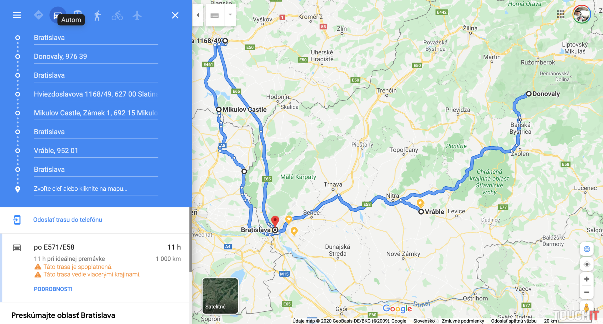 Približná trasa, ktorú sme počas troch dní s Mercedesom EQC absolvovali