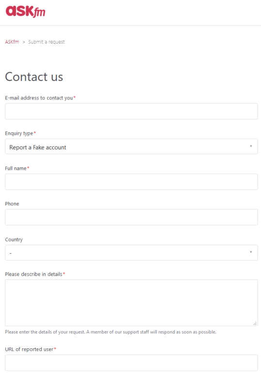 Mechanizmy tohto typu sa nachádzajú na každej veľkej i menšej sociálnej sieti, a to bez výnimky. Ak sa napríklad za vás niekto vydáva na sociálnej sieti Ask.fm, ktorá je známa hlavne v krajinách strednej a východnej Európy (vznikla v Lotyšsku), imitátorské profily môžete nahlasovať pomocou štandardného formulára https://support.ask.fm/hc/en-us/requests/new.