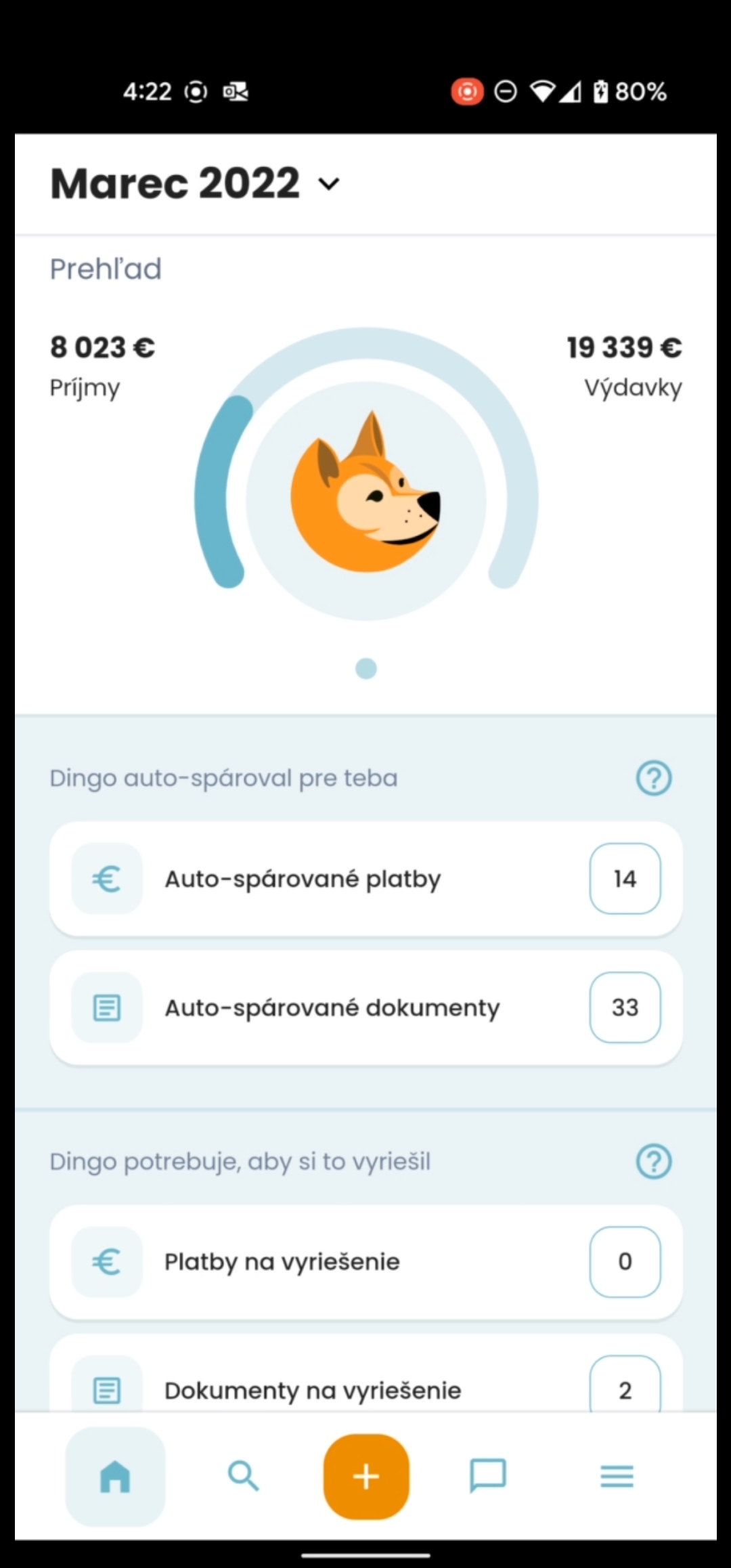 Realizovanú platbu z účtu dokáže DingoDot vyriešiť tak, že k nej v maili nájde zodpovedajúci doklad. Samozrejme, môže nastaviť prípad, že DingoDot niektoré platby nedokáže sám vyriešiť – napr. to bol firemný obed platený kartou, ale bloček z obedu z nejakého dôvodu v účtovníctve nie je. DingoDot ho preto nájsť ani nemohol. Vy máte pritom stále účtenku z obeda napr. v peňaženke a do mailu vám neprišiel. To sa dá vybaviť tak, že si bloček priamo mobilom odfotíte a neskôr nahráte z galérie do prostredia DingoDot.