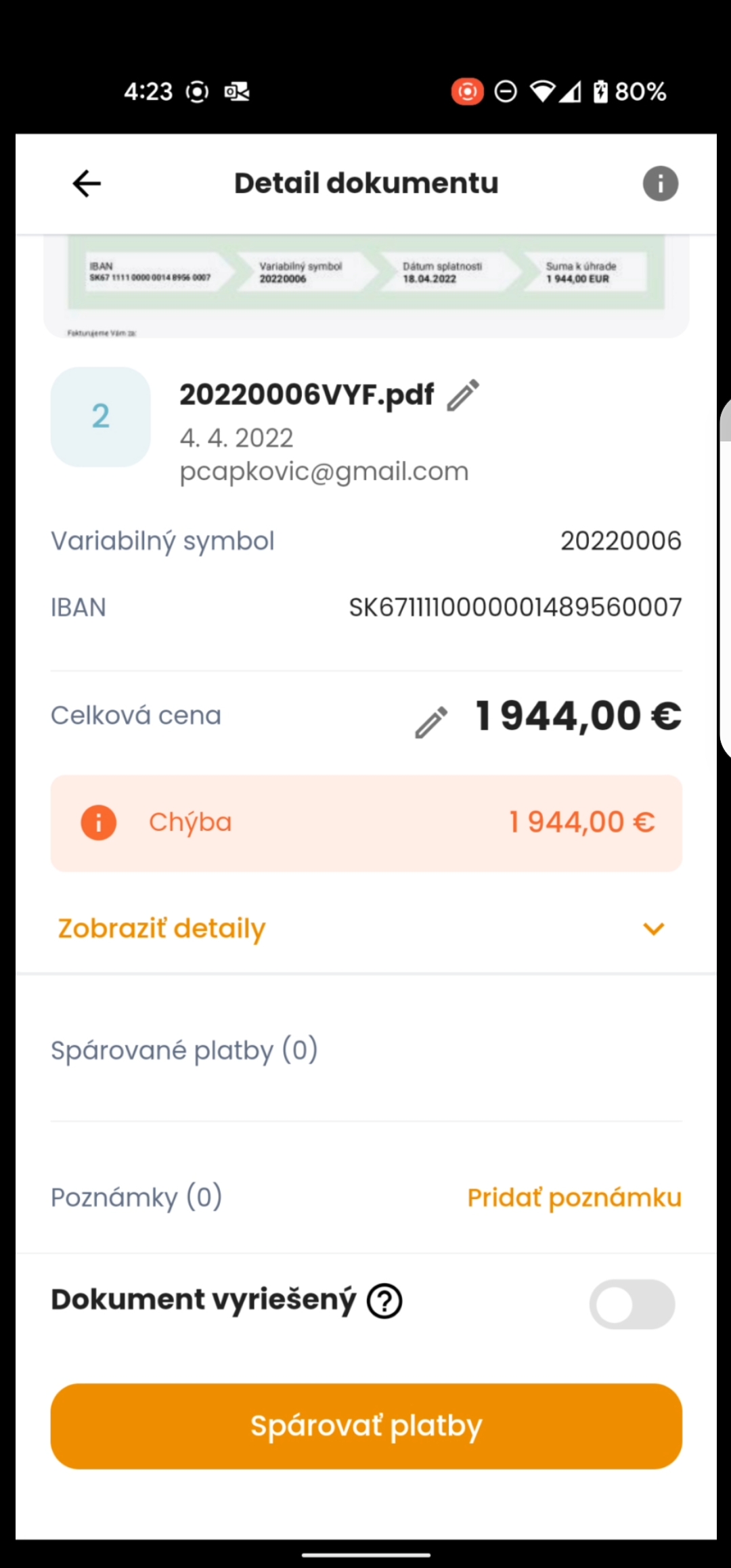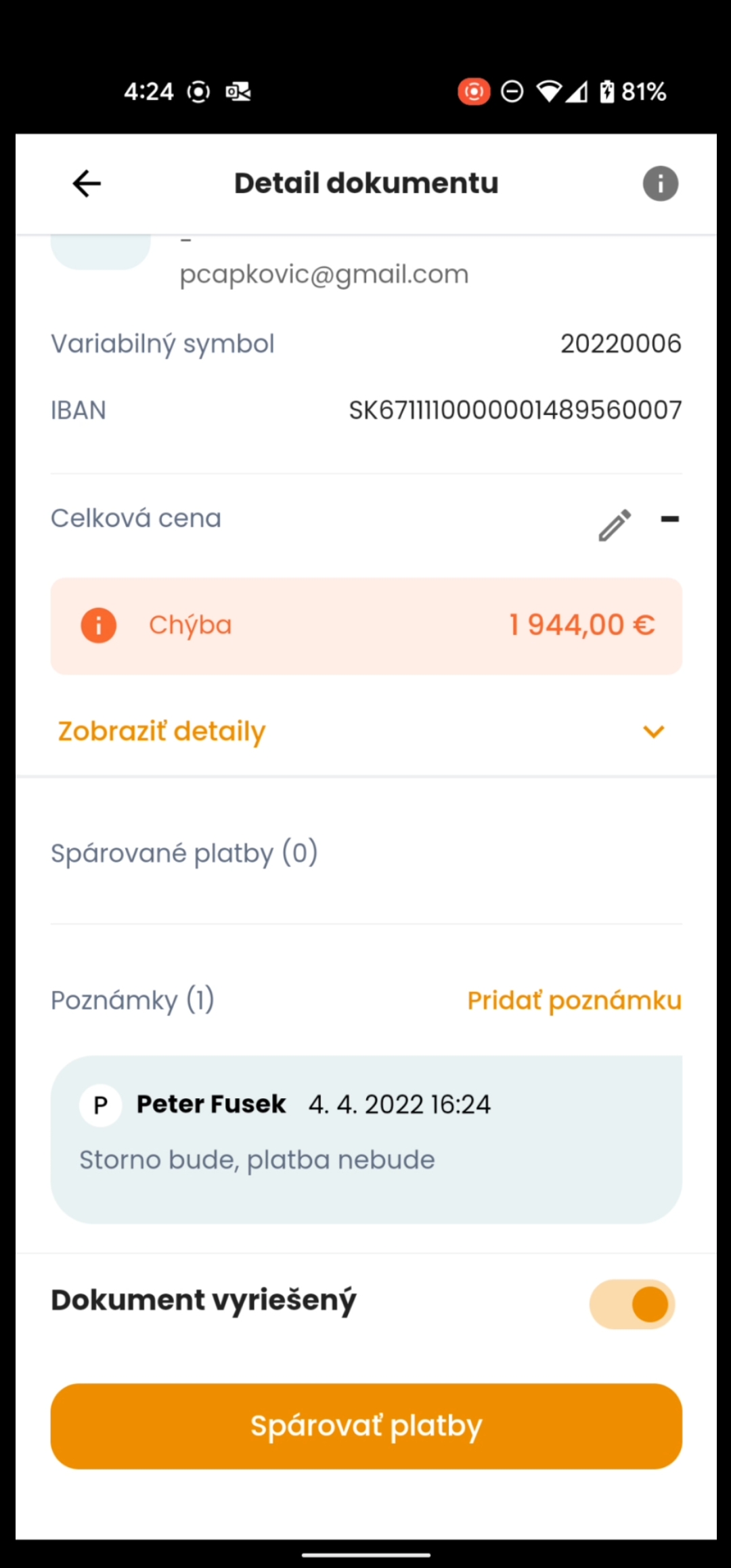 Takto sa dá vybaviť aj problém so stornovanými faktúrami. Rovnako, ak sa príde na to, že DingoDot nesprávne spároval niektorú platbu, dá sa v aplikácii rozpárovať a manuálne pridať správny dokument.
