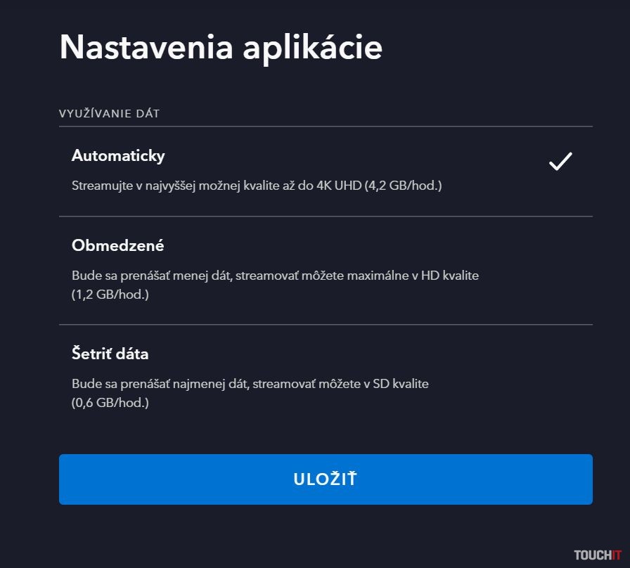 Maximálne rozlíšenie videa sa mení v závislosti od titulu, ktorý práve sledujete a tiež aj od zariadenia, na ktorom ho sledujete. Kvalitu streamovania si môžete nastaviť aj priamo v rozhraní aplikácie, resp. webového rozhrania. Spotreba sa pohybuje od 0,6 GB pre streamovanie v SD kvalite až po 4,2 GB pre 4K stream.