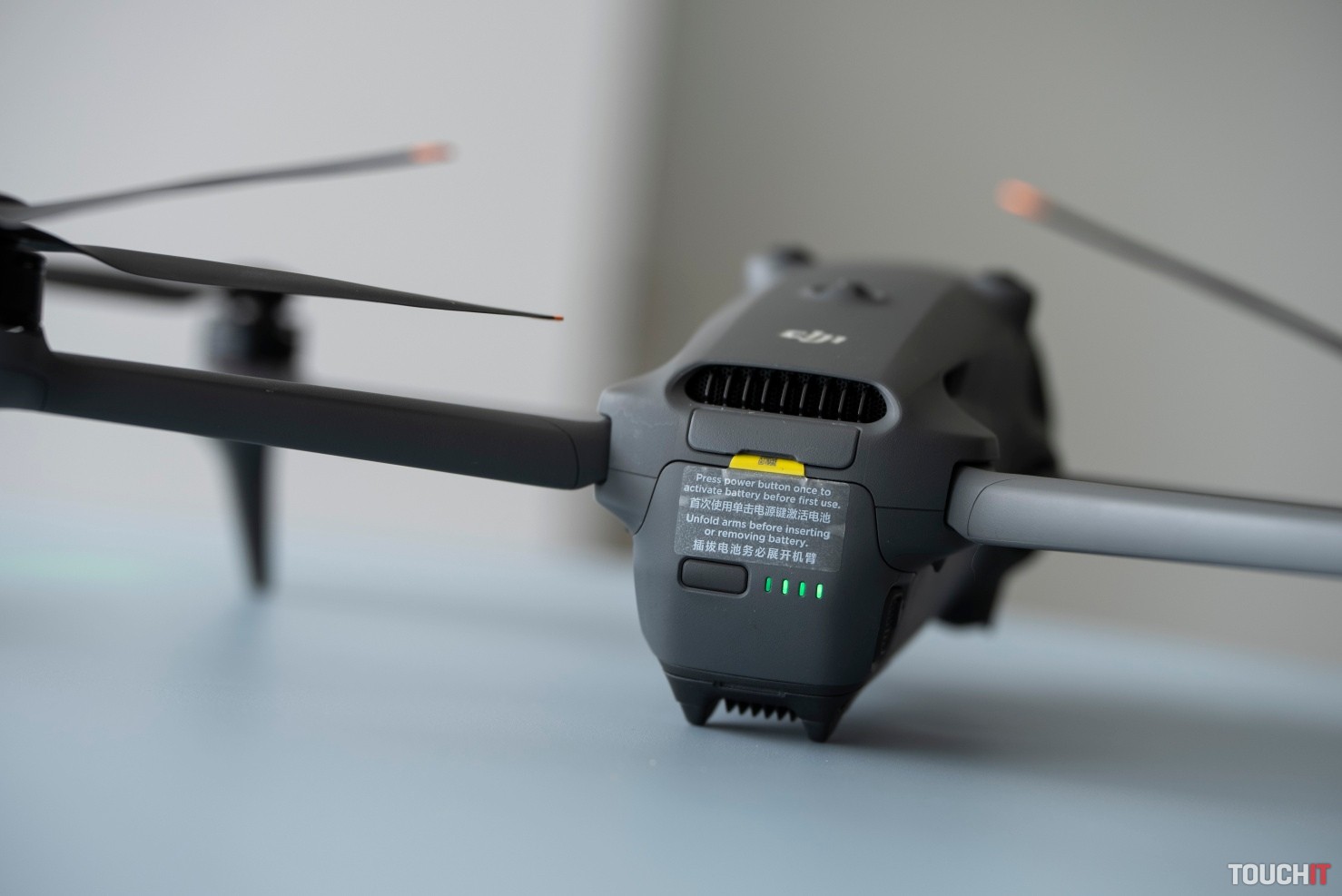 Batéria je s vyššou kapacitou a uvádzaná doba letu je 51 minút. My sme pri teste dosiahli dobu letu 40 minút. Pre vyššie výbavové verzie drona sa dodávajú celkovo 3 batérie s tým, že dodávaný nabíjací hub umožňuje súčasné nabíjanie batérií. Napájací zdroj je s výkonom buď 100 alebo 240 W. V najvyššej verzii sa tri batérie nabijú za 90 minút.
