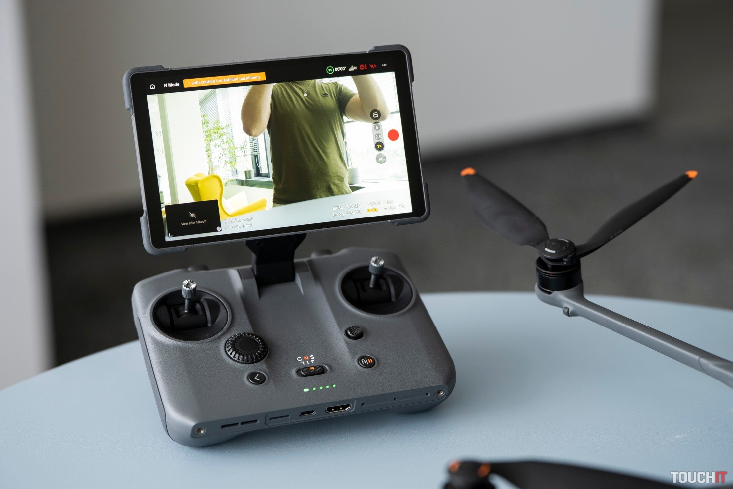 Na test sme mali k dispozícii štandardnú výbavu drona a najnovší ovládač DJI RC PEO 2.