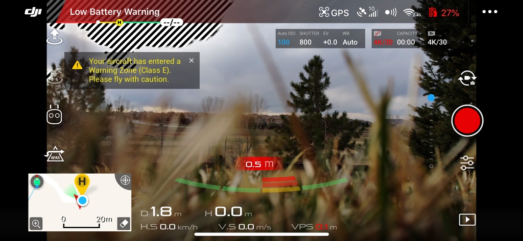 Air dostal batériu s kapacitou 2375 mAh, ktorá by mala vydržať 21 minút aktívneho letu. Realita je však odlišná, pričom veľa záleží od poveternostných podmienok. V priemere je výdrž batérie okolo 16 až 18 minút. Za tento čas sa dá niečo vytvoriť, ale ak sa nechcete obmedzovať, odporúčame rozšírené balenie s 3 batériami. V aplikácii vidíte aktuálnu kapacitu batérie. Ak výrazne klesne, budete na to akusticky upozornení, ak nezareagujete, začne sa automatický návrat na miesto vzletu. V aplikácii tiež vidíte používanie a stav batérie + nalietané hodiny. Zaujímavosťou na záver je, že Air dokáže v režime SPORT letieť rýchlosťou až 68 km/h.
