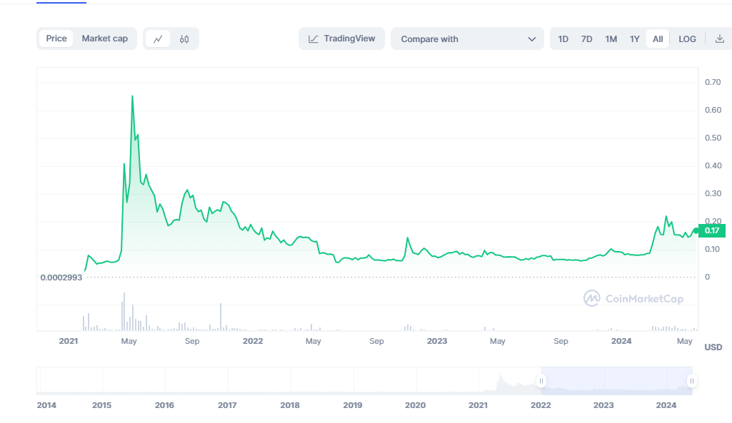 V januári 2021 bola cena približne 0,009 USD, 20. apríla to bolo už 0,4 USD. Vrchol zažila kryptomena 6. mája 2021 s cenou 0,68 USD. Odvtedy mala klesajúcu tendenciu. Aktuálna cena je v čase tvorby tohto článku, teda 27. 5. 2024, na úrovni 0,1655 USD.
