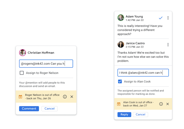 Dokumenty dokážu upozorniť na to, keď sa zmienite o používateľovi, ktorý nie je v práci. Na základe toho tak budete vedieť, že nemôžete od neho očakávať okamžitú odpoveď. Služba je integrovaná s inými produktmi G Suite, čo používateľom umožňuje zmieniť sa o spolupracovníkoch alebo odpovedať na ich komentáre, čo zabezpečuje bezproblémovú spoluprácu. Môže nastať situácia, že kolega sa vzdiali mimo kancelárie, a niečo od neho potrebujete. Aj z tohto dôvodu Dokumenty teraz budú informovať, že pravdepodobne neodpovie na váš komentár tak rýchlo, ako by ste čakali. Keď sa zmienite alebo odpovedáte niekomu, kto v Google kalendári označil svoju dostupnosť ako “mimo kancelárie”, Dokumenty automaticky zobrazia banner informujúci, že tento kolega je momentálne mimo kancelárie, a tiež dátum, kedy sa má vrátiť. Takto zobrazených môže byť aj viac ľudí naraz. Toto je elegantná funkcia, pretože ste okamžite upozornení na neprítomnosť niekoho v prípade, že očakávate rýchlu odpoveď. Funkcia sa začína postupne rozširovať. Globálna dostupnosť pre používateľov G Suite má byť do konca februára. Zdroj: AndroidPolice Prečítajte si aj: https://staging.touchit.sk/google-inteligentne-hodinky-s-wear-os-dostanu-lepsiu-podporu/328950Podobné články