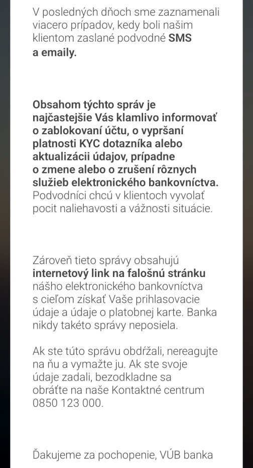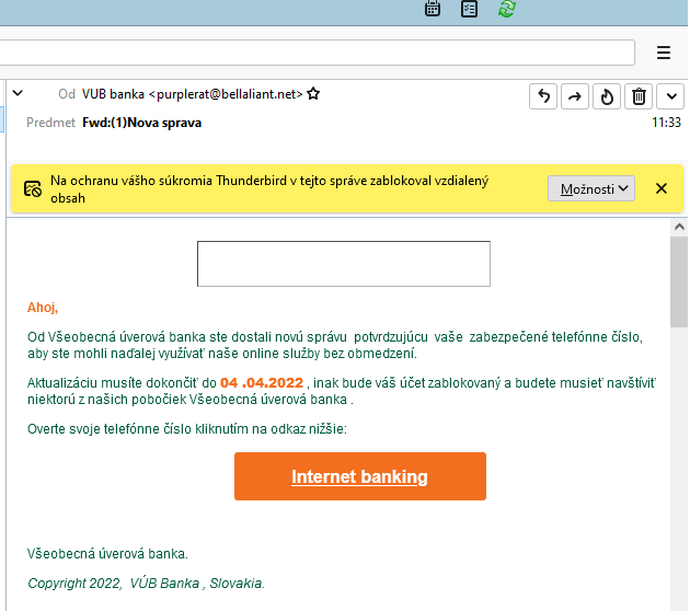Popri falošných SMS z Tatra banky sa teraz objavujú aj emaily od VÚB Banky.