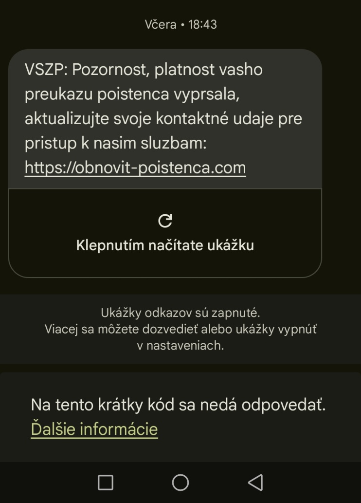 Dostali ste SMS o platnosti preukazu VŠZP? Je to podvod