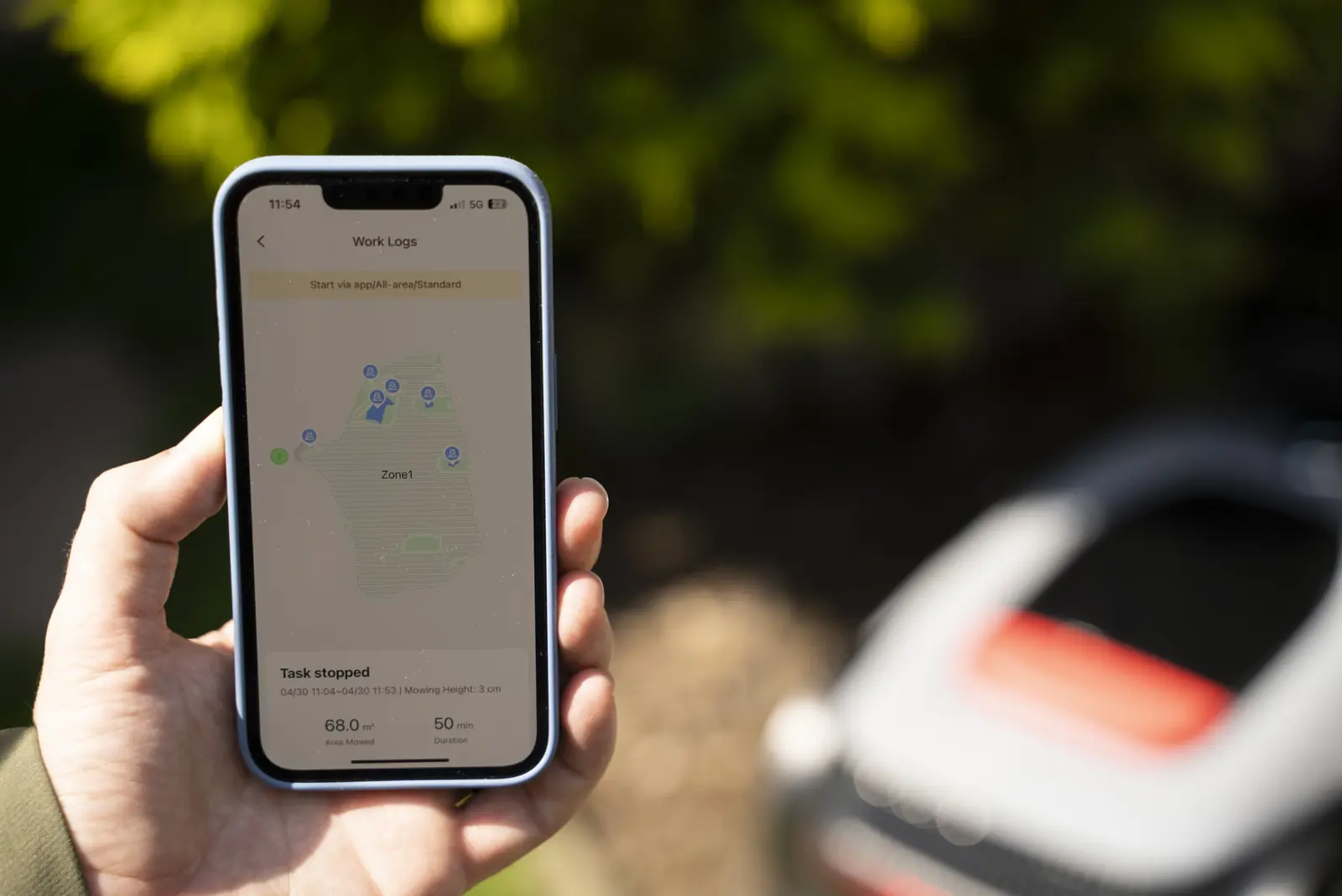 Po vytvorení mapy a zadefinovaní zakázaných zón môžete kosačku pustiť kosiť. Na výber je niekoľko režimov kosenia, ako je kosenie celej plochy, kosenie po obvode, zónové kosenie, kosenie na zvolenom mieste alebo manuálne kosenie, keď ju ovládate cez smartfón.