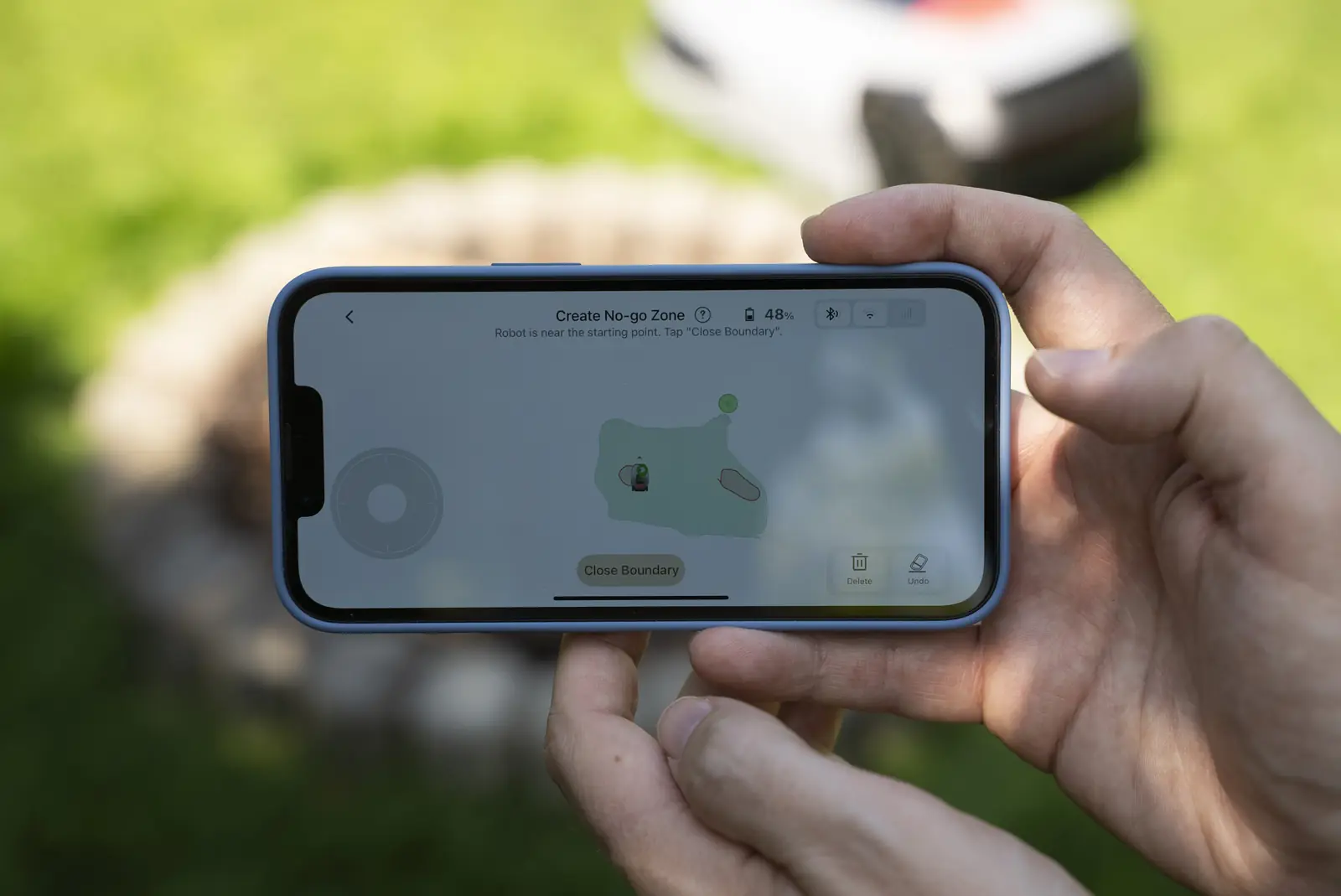 V rámci prvého použitia je potrebné vytvoriť mapu vašej záhrady. Funguje to manuálne. Kosačku ovládate pomocou smartfónu cez Bluetooth ako autíčko na diaľkové ovládanie. Takýmto spôsobom vytvoríte hranice vašej záhrady. Následne môžete vytvoriť zakázané zóny, kam nemá kosačka chodiť kosiť. Taktiež môžete prepojiť jednotlivé časti záhrady, pokiaľ sú oddelené chodníkom alebo inou plochou.