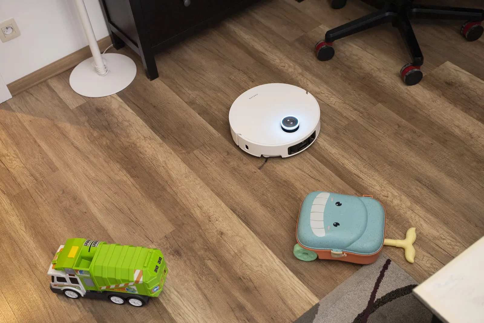 Dreame X50 Ultra využíva navigáciu pomocou lasera a pomáha si plnohodnotnou kamerou, ktorá je zabudovaná v prednej časti. Vysávač vďaka tomu dokáže vidieť objekty a prekážky a dokáže ich rozpoznať. X50 Ultra počas môjho testovania spoľahlivo identifikoval prekážky a odfotil ich. Môžete si ich skontrolovať v mobilnej aplikácii. V praxi to znamená, že vysávač sa im dokáže vyhnúť a dobre povysávať domácnosť, pokiaľ si náhodou nestihnete urobiť poriadok. Otestoval som to na detských hračkách.