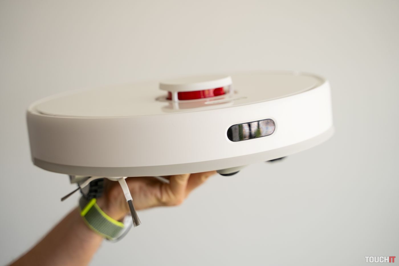 DreameBot D10 Plus mi vo viacerých parametroch pripomína DreameBot Z10 Pro, ktorý dlhodobo používam doma. Ide o robotický vysávač s tradičným okrúhlym tvarom a pravou bočnou kefou. Hlavná kefa je jedna a má šírku 170 mm, čo je štandard na trhu. Rozmery vysávača sú 349 × 350 × 96,3 mm, pričom uvedená výška je vrátane výčnelku, v ktorom je zabudovaný laser.