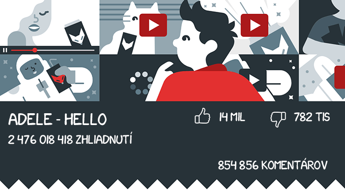 Vezmite si napríklad najpopulárnejšie videá na YouTube. Do prvej desiatky patrí aj videoklip pesničky Hello od britskej speváčky Adele, ktorý má 2,5 miliardy prezretí. Spolu s tým má zhruba 15 miliónov lajkov/dislajkov a 854 000 komentárov.
