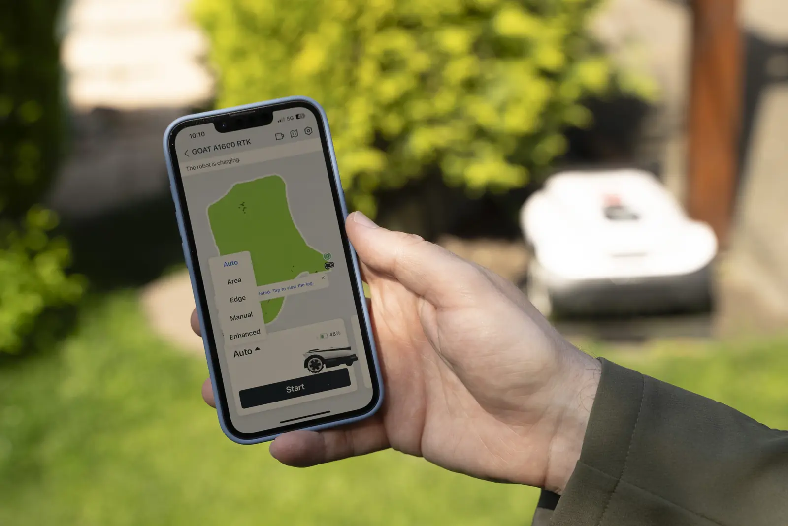 Goat A1600 RTK dokáže v prípade potreby prerušiť kosenie, vrátiť sa do dokovacej stanice, nabiť sa a následne bude pokračovať tam, kde predtým skončila. To, ktorú časť záhrady už pokosila, si môžete kedykoľvek skontrolovať prostredníctvom mobilnej aplikácie. Podmienkou je, aby bola kosačka pripojená do Wi-Fi siete.