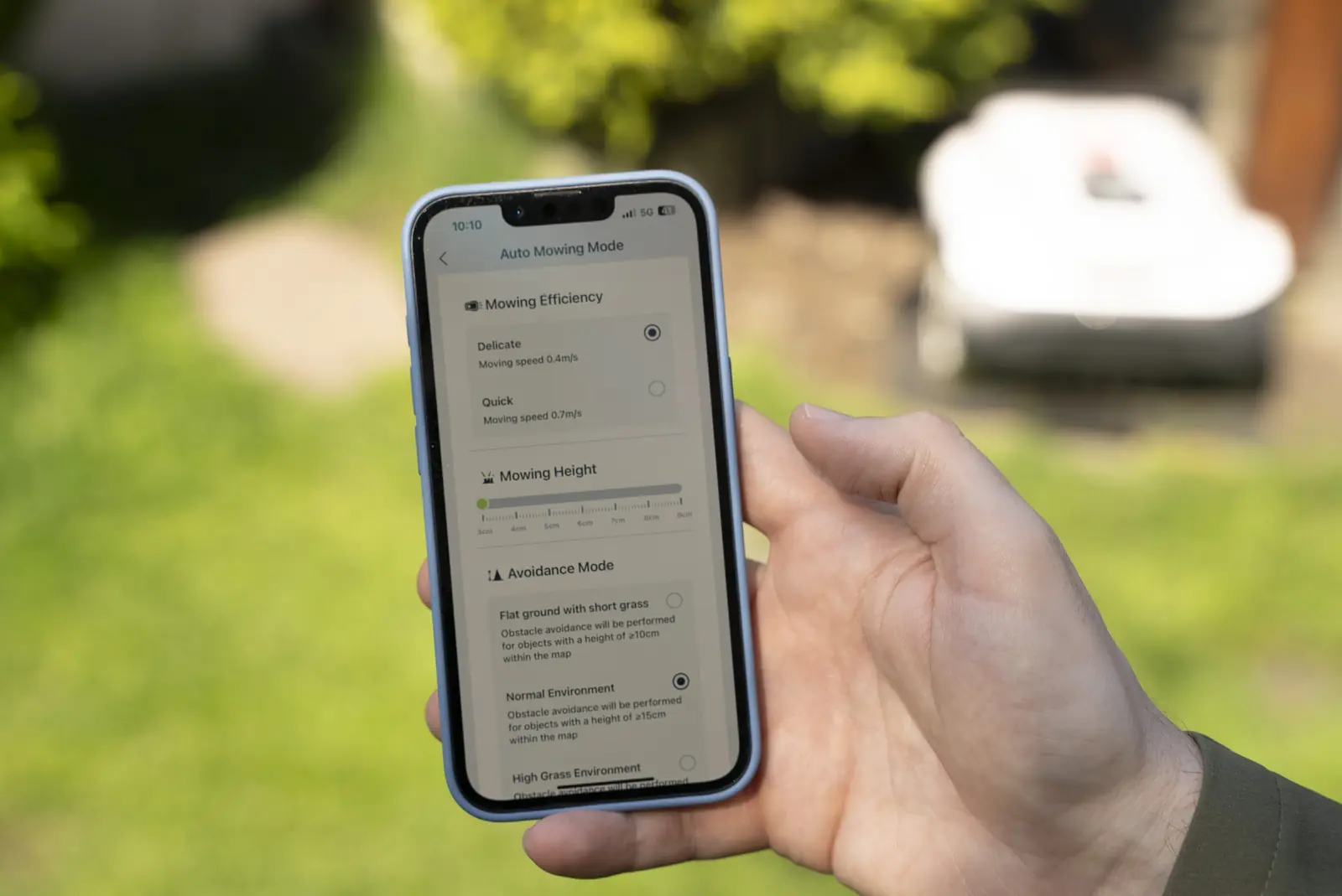 Uvedené nastavenia si môžete prispôsobiť aj pre automatický režim kosenia celej záhrady a tiež pre režim kosenia vybranej časti. Mobilná aplikácia Ecovacs Home takisto ponúka možnosť prispôsobiť si vyhýbanie sa prekážkam, a to v závislosti od ich výšky, možnosť automatickej zmeny pohybu v týždňových intervaloch (kosenie zľava-doprava, potom zhora-dolu) či citlivosť kosenia po obvode záhrady a okolo zakázaných zón.