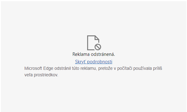 Druhá stránka tejto záležitosti je blokovanie reklám. Toto sa dá robiť cez doplnky, ktoré si nainštalujete. V tomto smere je tu ale jedna vlastnosť, s ktorou sa môžete pri Edgei stretnúť. Ide o funkciu blokovania reklám, ktoré majú nadmernú spotrebu systémových zdrojov. Je to štandardná ochrana, ktorá je zabudovaná priamo v prehliadači a netreba na ňu žiadny doplnok.