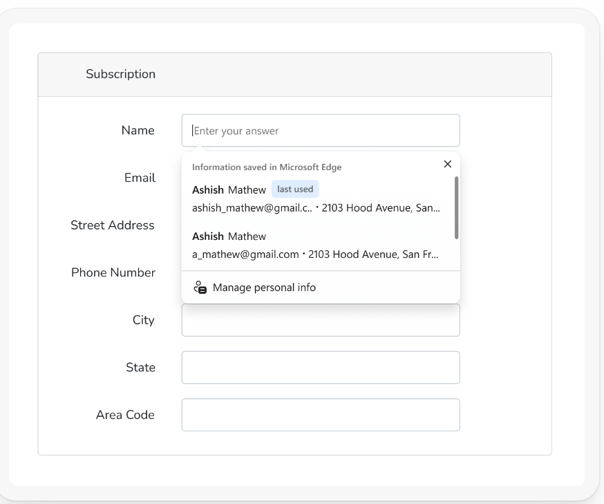 Nemenej dôležitá funkcia, ktorá šetrí čas, je vyplňovanie online formulárov, pričom teraz aplikácia ukáže, ktorý údaj bol naposledy použitý. Kliknutím na formulárové pole sa zobrazia údaje na vyplnenie s malou informáciou o tom, ktorý z údajov ste naposledy vložili do formulárového poľa.