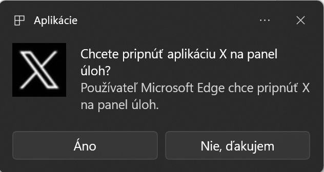 Vaše obľúbené internetové lokality sa dajú pripnúť na panel úloh podobne ako aplikácie. Program poskytuje v úvode 6 základných internetových adries medzi nimi napríklad Amazon, Microsoft Outlook alebo napríklad Facebook či sieť X. Používatelia, ktorí navštevujú niektorú z týchto stránok k nim budú mať jednoduchší prístup. Pre úplnosť uvádzame, že stránka bude zapnutá v prehliadači Edge.