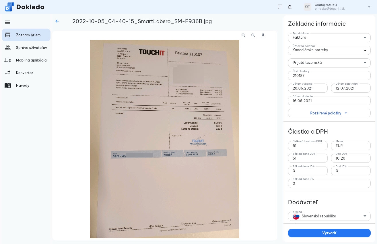 TI: Dá sa takto úplne zautomatizovať celý proces spracovania dokladov vo firme bez zásahu iného človeka?
