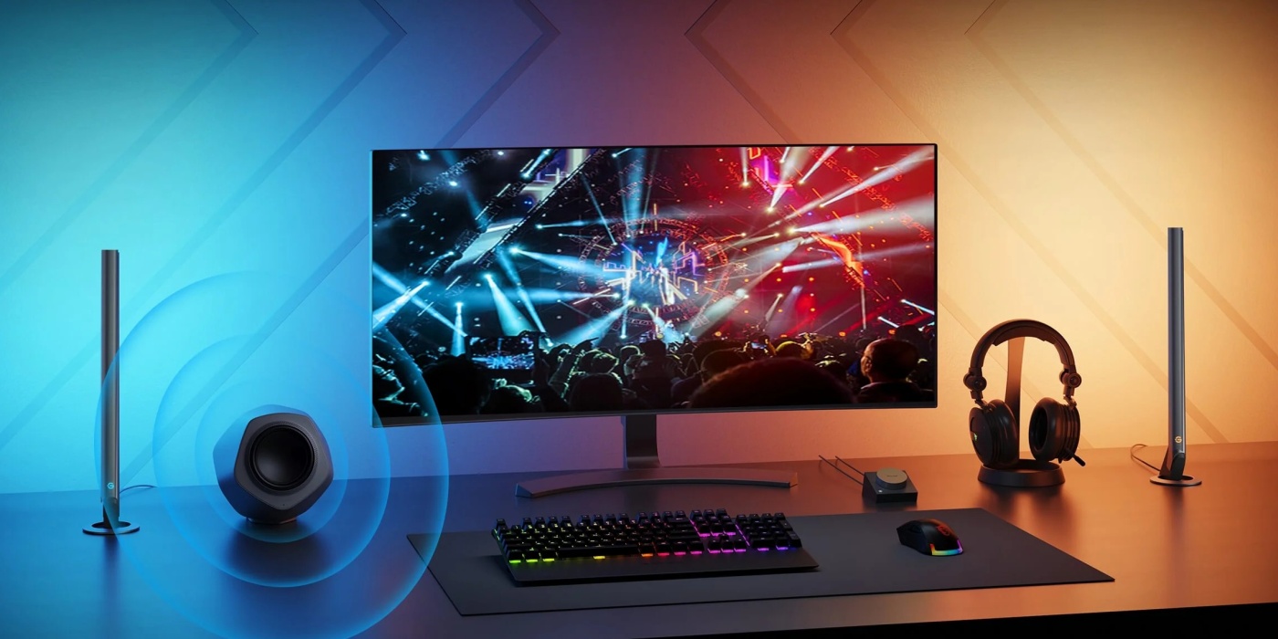 Tretím produktom je Govee RGBIC Gaming Light Bars. Ide o svetelnú vizualizáciu zvuku z hry, ktorú práve hráte. Súčasťou dodávky je smart controler, pomocou ktorého rýchlo ovládate jas, farbu a zapnete hudobný režim. Svetlá môžete ovládať aj hlasom. Toto svetlo sa hodí k vašej hernej zostave tým, že osvetľuje stenu pred vami a takto vzniká intenzívny pocit z hry.