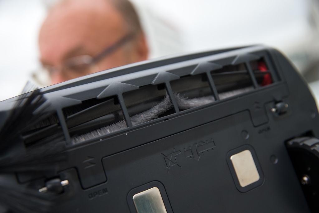 Keď si pozriete Electrolux PUREi9 podrobnejšie, zistíte množstvo nových funkcií. Naozaj sa vďaka svojmu trojuholníkovému tvaru dostane aj do rohov. Vonkajšia kefa PowerBrush sa uplatní hlavne pri vysávaní pozdĺž stien. Dá sa ľahko vymeniť, čo bude treba časom urobiť. Hlavná rotačná kefa je umiestnená tesne pri hrane vysávača, a to prispieva k lepšej účinnosti pri vysávaní pri stenách. Celkovo vysáva premyslene a dôkladne.