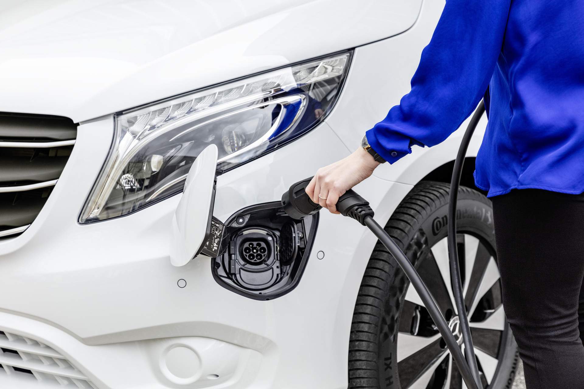 Mercedes-Benz eVito Tourer disponuje vodou chladenou nabíjačkou so striedavým prúdom s výkonom 11 kW. Vďaka tomu je pripravený na nabíjanie striedavým prúdom doma alebo na verejných nabíjacích staniciach. Nabíja sa prostredníctvom nabíjacej zásuvky CCS, ktorá sa nachádza vpravo, v prednom nárazníku. Prostredníctvom tejto zásuvky možno transportér rýchlo nabíjať aj jednosmerným prúdom. Akumulátor vozidla eVito Tourer tak možno nabiť vďaka maximálnemu nabíjaciemu výkonu 110 kW na rýchlonabíjacej stanici približne za 45 minút z 10 – 80 %. Akumulátor s využiteľnou kapacitou 90 kWh umožňuje dojazd 361 kilometrov.