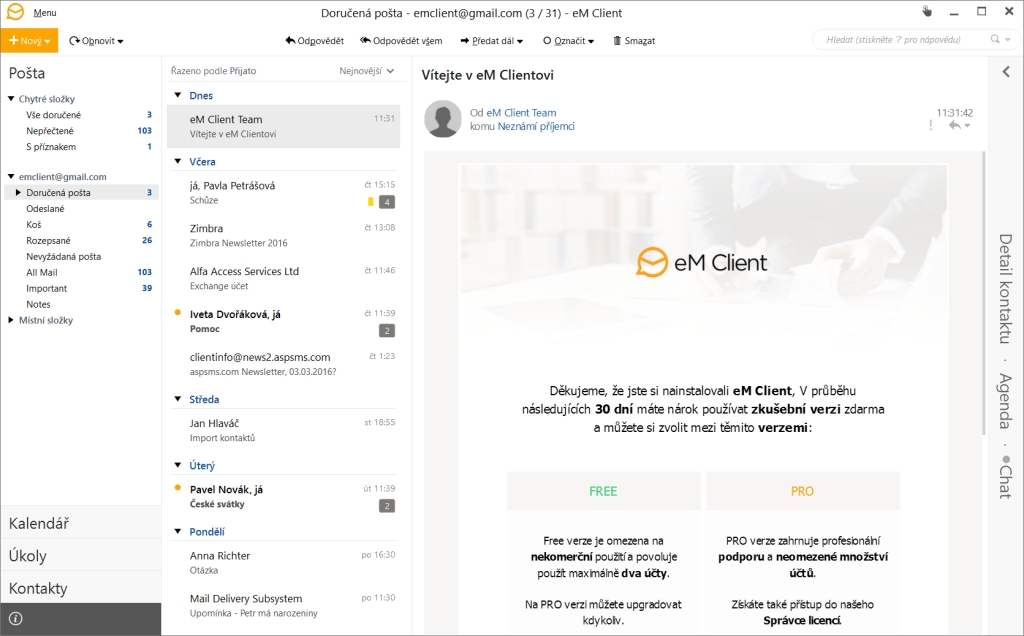 Email sa za posledné roky výrazne nezmenil. Na jeho prenos sa používajú niekoľko rokov staré, no funkčné protokoly. Zmenil sa prístup aplikácií k správe pošty. Ide o rozhranie a špecializované služby navyše. Princíp zostáva rovnaký, avšak výber protokolu ovplyvní, ako sa k vám pošta dostane. Protokol POP3 (Post Office Protocol) slúži na doručovanie pošty a jej stiahnutie priamo do zariadenia. Môže to byť mobil alebo počítač. Protokol je sám o sebe nezabezpečený, preto sa ako nadstavba používa šifrovanie cez SSL (Secure Socket Layer) alebo modernejší TSL (Transport Layer Security). Možno ste si už všimli, že niektoré poštové servery odmietnu vytvoriť spojenie, ak v klientovi nezvolíte prenos cez tieto šifrovacie vrstvy. Ide o vynútené šifrovanie, niektorí poskytovatelia ho majú voliteľné. Gmail.com alebo Outlook.com fungujú výhradne cez šifrovaný kanál. S najväčšou pravdepodobnosťou máte takúto politiku uplatnenú aj vo firemných emailoch. Ak ste teda skúšali nastaviť firemný email aj inde, ako na počítači a spojenie sa nepodarilo, toto môže byť jednou z príčin. Ďalší protokol je IMAP4 (Internet Message Access Protocol), ktorý je určený na prístup k pošte pri trvalom spojení a obojsmernú synchronizáciu. Vo webovom rozhraní si môžete vytvoriť adresáre a tie sa premietnu aj v aplikácii pre Windows alebo v klientovi pre smartfón. Podporuje vyhľadávanie na strane servera a priebežné sťahovanie správ tak, ako sa objavujú vo všetkých priečinkoch, nielen v doručenej pošte. SMTP je protokol na odosielanie správ. Bez neho by ste nemohli posielať poštu. Účet na prijímanie pošty a jej odosielanie je spravidla rovnaký. No existujú aj menšie výnimky, a to napríklad rozdielne heslo pre príjem pošty, teda prihlásenie do vašej schránky a heslo pre odosielanie pošty. Exchange a alternatívy sú špecializované riešenia, ktoré synchronizujú nielen poštu a priečinky vo vašom emailovom konte. Prenáša sa aj obsah kalendára, zoznamu úloh a kontaktov, obojsmerne. Toto je veľká výhoda pre firemné riešenia, ktoré majú vlastný server a poštu na svojej doméne. Taký „exchange“ však pravdepodobne používate aj vy. Stačí zadať udalosť do kalendára na Google Kalendári a máte ju nielen vo webovom rozhraní, ale aj v smartfóne a naopak.