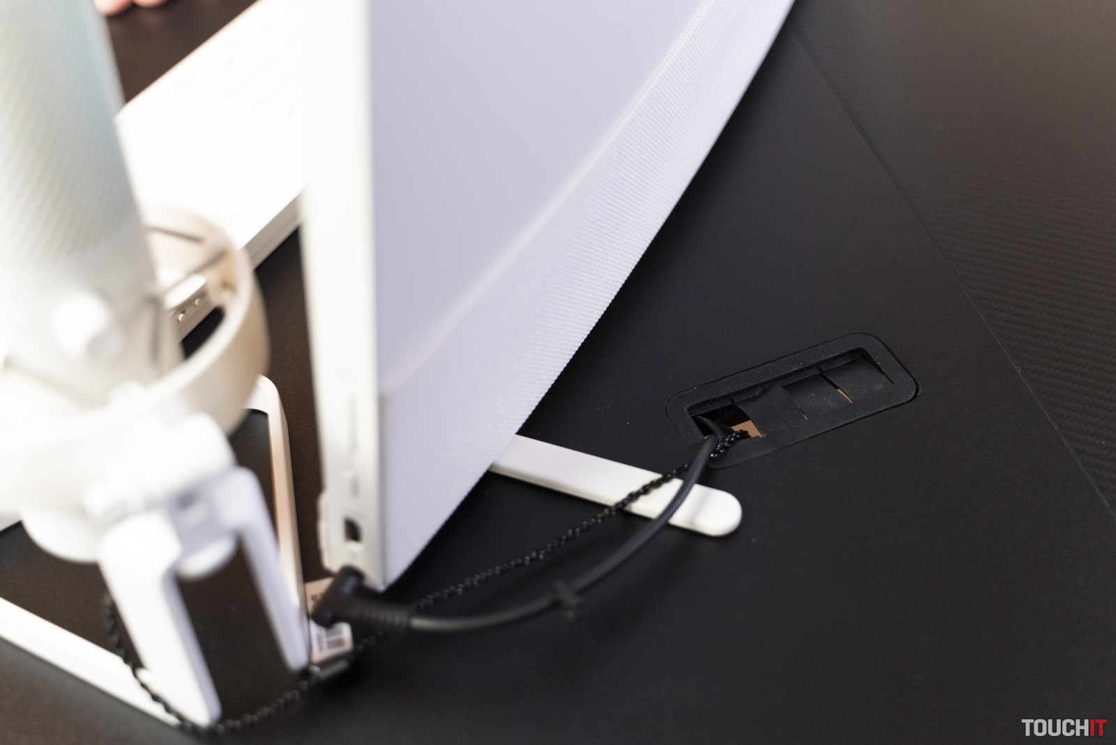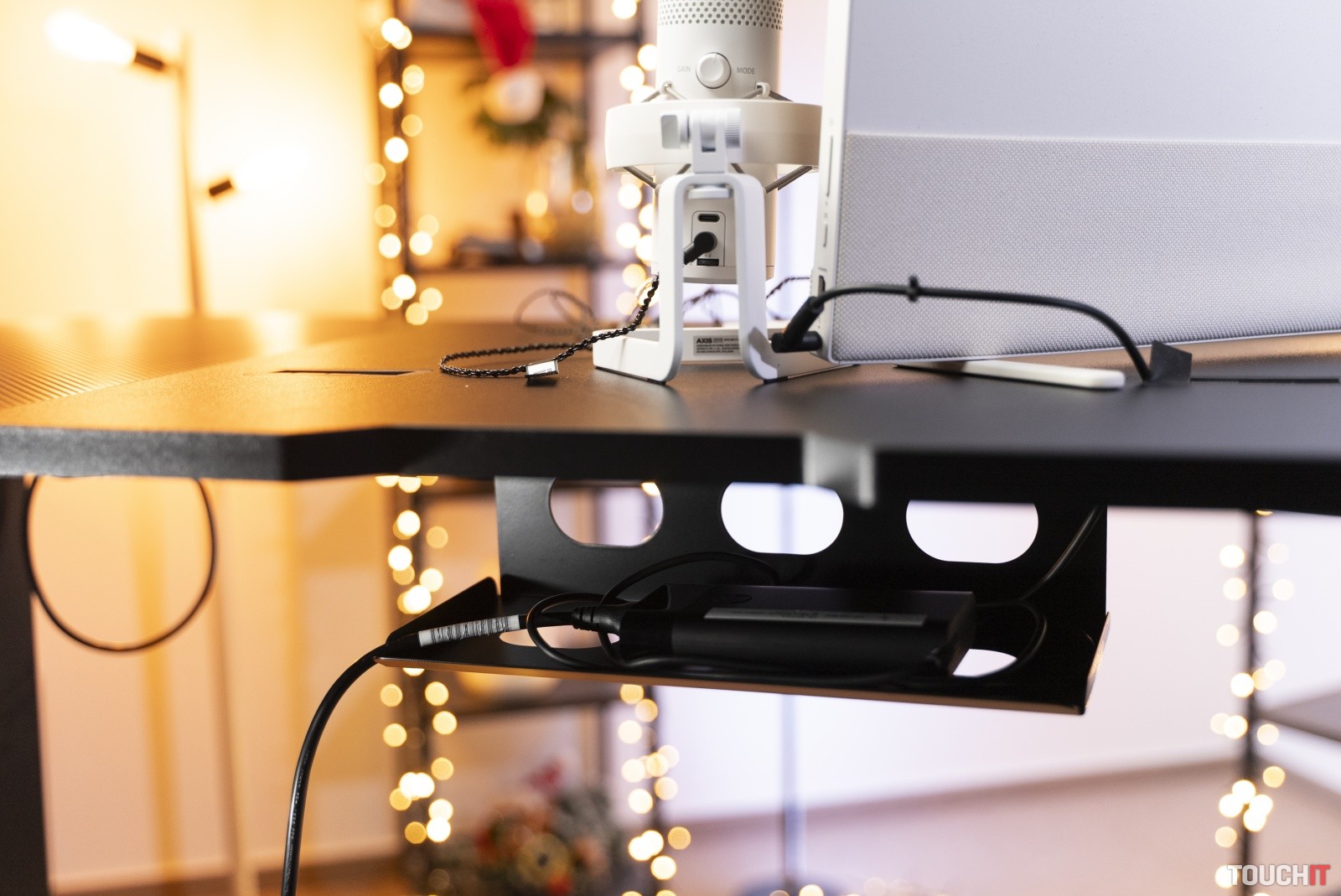 Chválim aj veľmi dobrú ergonómiu, čiže nehrozí, že by ste kolenami udierali o pult, alebo nebodaj by ste nedosiahli na klávesnicu. Stôl je veľmi dômyselne vybavený aj odkladacím priestorom na adaptéry, slúchadlá či káble, pričom tie sú vďaka otvorom priamo v pracovnej doske nenápadne vyvedené na jej vrchnú časť.