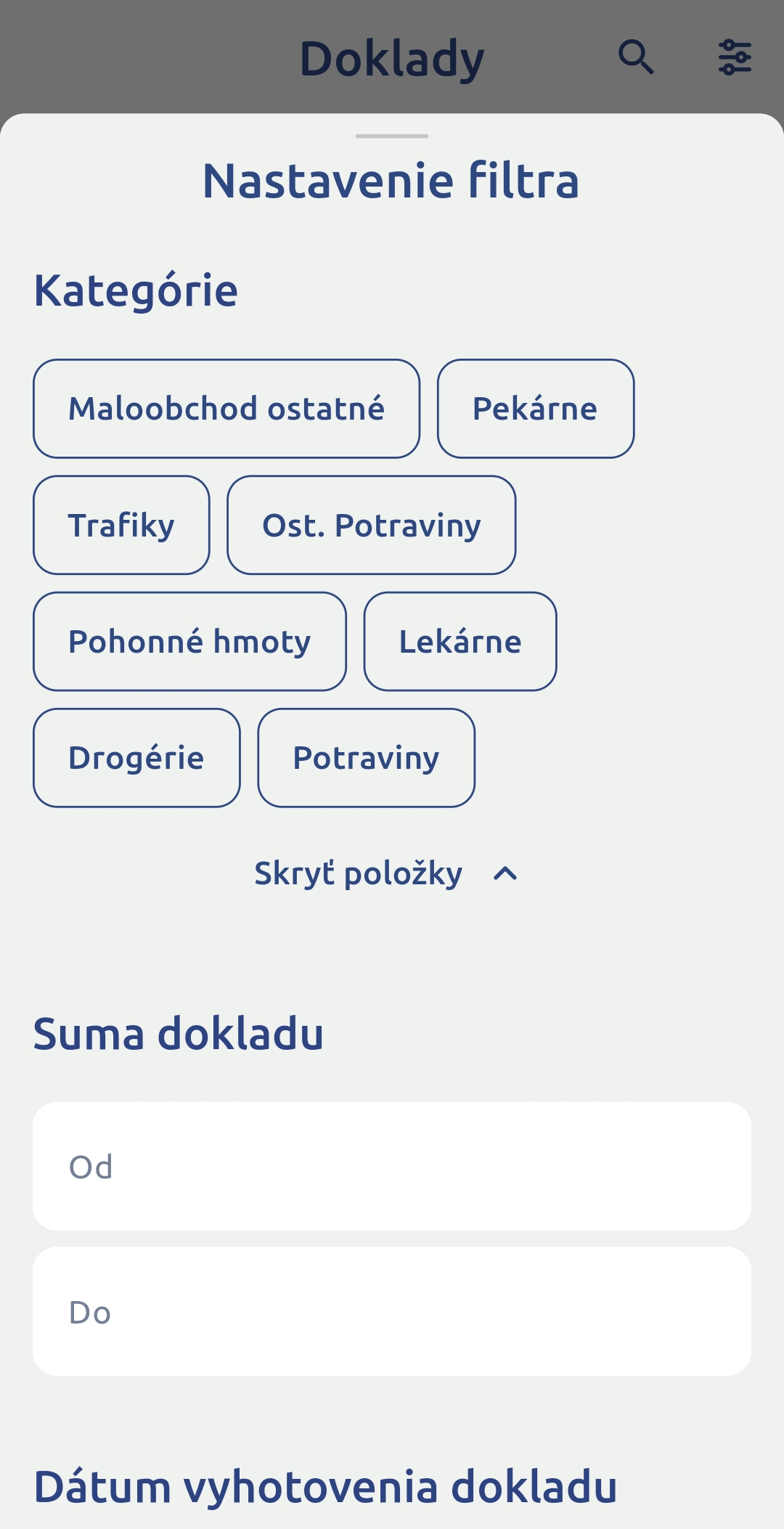 Aplikácia má aj prvé funkcie zamerané na vyhľadávanie spomedzi zapamätaných bločkov – je tu filter pre kategórie, hľadať môžete podľa sumy nákupu alebo jeho dátumu. Zo zapamätaných údajov sa dá vyhotoviť denný alebo mesačný prehľad výdavkov. Funkcionalita aplikácia sa bude ďalej vyvíjať, Finančná správa čaká na pripomienky od používateľov. Určite si ju vyskúšajte.