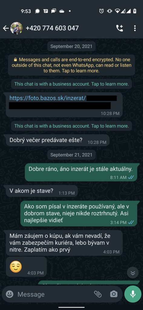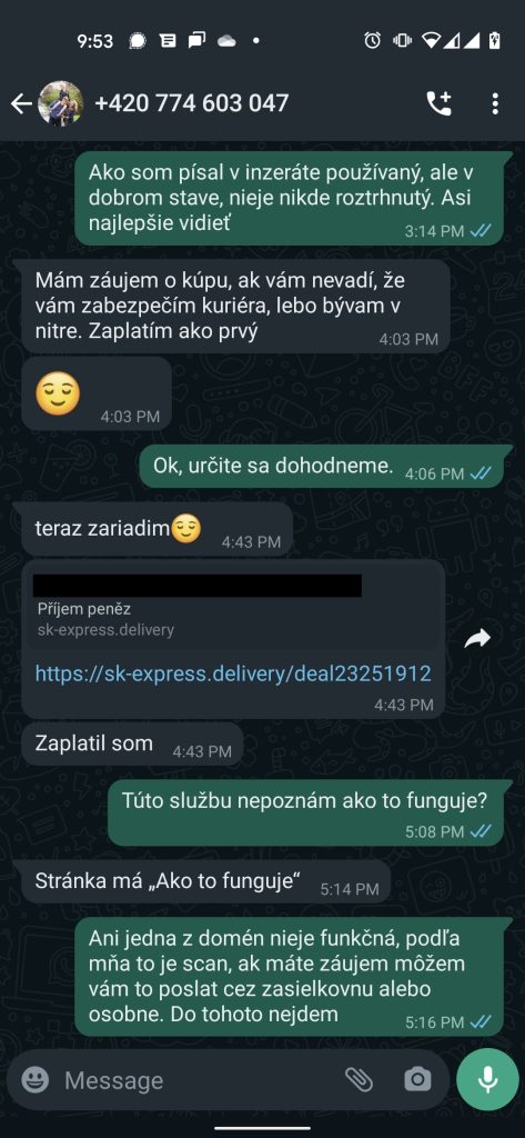 - V prípade akéhokoľvek podozrenia skúste cez Google preveriť telefónne číslo, adresu alebo meno potenciálneho kupujúceho a zistite, či sa už podobný prípad nevyskytol. Sledujte tiež stránky ako Hoaxy a podvody – Polícia SR, ktorá často podrobne dokumentuje minulé prípady.