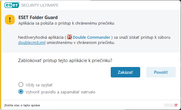 Nový ESET Folder Guard – táto technológia pomáha chrániť cenné dáta používateľov systému Windows pred škodlivými aplikáciami a hrozbami, ako sú ransomvér, červy a wipery (teda pred malvérom, ktorý môže poškodiť dáta). Funkcia sa nastavuje priamo cez rozhranie programu. Pri pokuse o prístup do chráneného priečinka sa zobrazí hlásenie. Zablokovanie aplikácie umožní prezeranie priečinka, ale nepovolí vykonávanie zmien (úpravu, mazanie alebo presúvanie súborov).