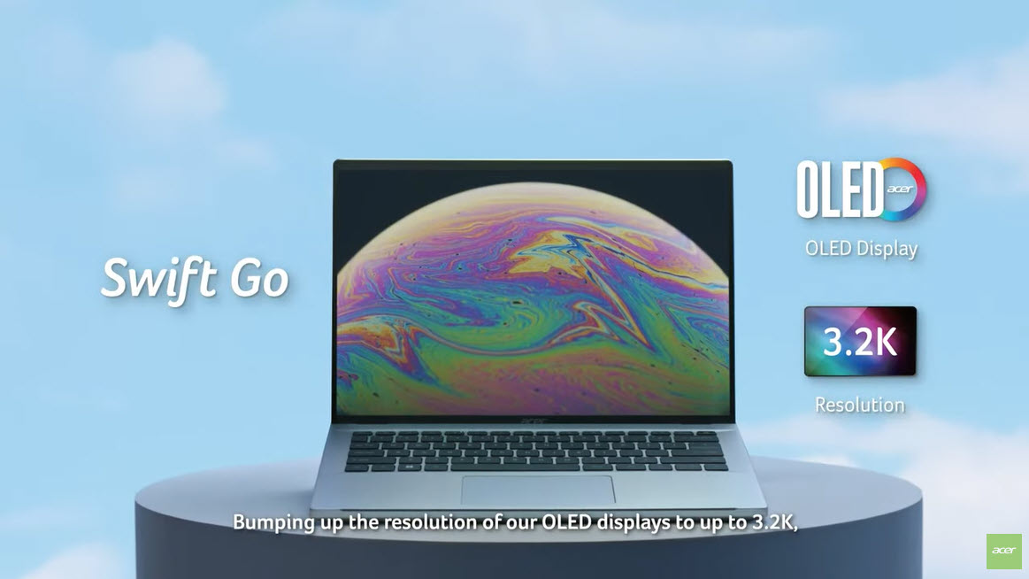 Úplne nové modely Swift Go 16 (SFG16-71) a Swift Go 14 (SFG14-71) obsahujú najnovšie technológie a sú vybavené displejom OLED s rýchlou obnovovacou frekvenciou. Displeje dosahujú jas 500 nitov, 100 % pokrytie farebného priestoru DCI-P3 a majú certifikáciu VESA DisplayHDR True Black 500. Swift Go 16 je vybavený 16-palcovým 3,2K displejom OLED s rozlíšením 3 200 × 2 000 px a obnovovacou frekvenciou 120 Hz, zatiaľ čo Swift Go 14 sa môže pochváliť 14-palcovým 2,8K displejom OLED s rozlíšením 2880 × 1800 px a obnovovacou frekvenciou 90 Hz. Displeje majú pomer strán 16:10, klávesnice sú efektne podsvietené.