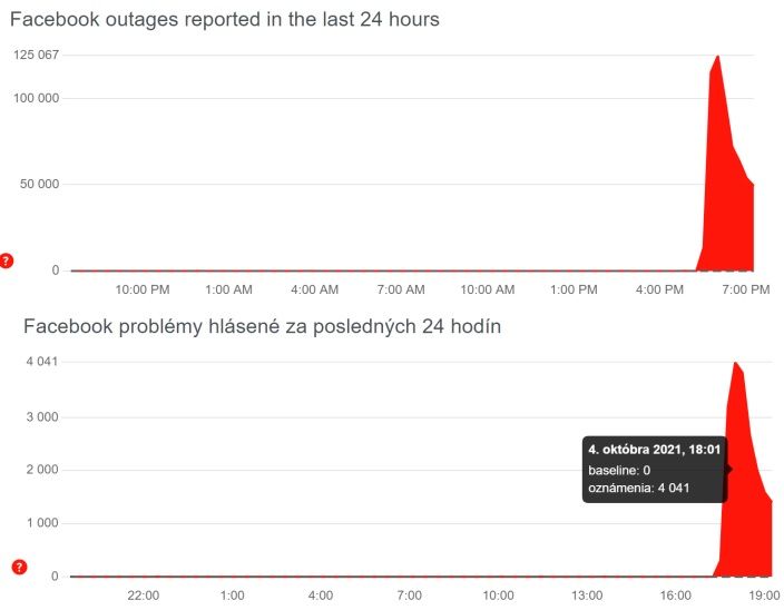 V redakcii sme si všimli problémy po 18-tej hodine slovenského času. Prestalo nám fungovať odosielanie správ cez Messenger a WhatsApp. Takisto sme si všimli nefunkčnosť webovej stránky facebook.com a instagram.com. Pri pokuse o zobrazenie webového rozhrania Facebooku sa zobrazí všeobecná hláška prehliadača, že táto stránka nie je dostupná. Instagram hlási chybu 5xx Server Error.