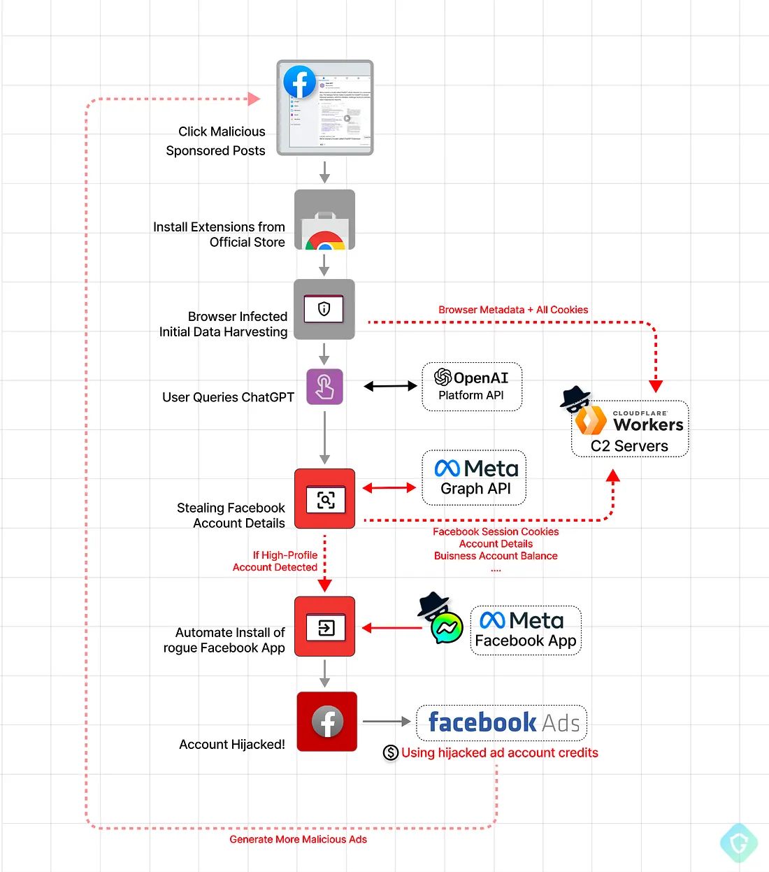Ďalej získa prístup k rozhraniu Graph API, ktoré používa spoločnosť Meta (vlastník Facebooku). Následne môže konať v mene ukradnutého účtu, napríklad spravovanie reklamných kampaní a tak šíriť vlastné príspevky a platiť za ich zvýšenú formu propagácie.